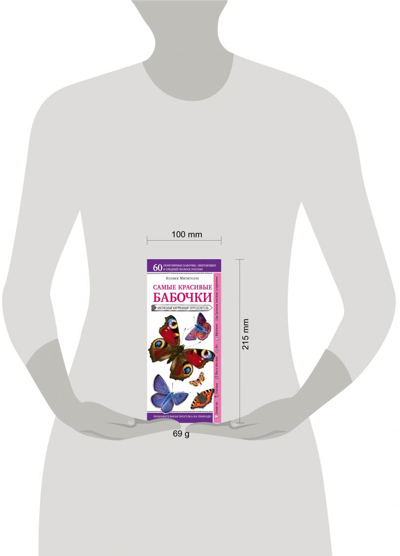 Карманный определитель - незаменимый помощник каждого любителя родной природы. Его удобно брать с собой в лес и на прогулку! Удобный наглядный гид познакомит вас с 60 видами самых красивых бабочек, обитающих в средней полосе России. Путеводитель даст вам приятную возможность восхититься красотой бабочек, определить вид, место обитания, время лёта. Прочтите краткое описание и поделитесь своими знаниями с окружающими. Оригинальная конструкция обложки: клапаны-раскладушки с двух сторон обложки, на которых представлены цветные фотографии всех упоминающихся в книге видов.