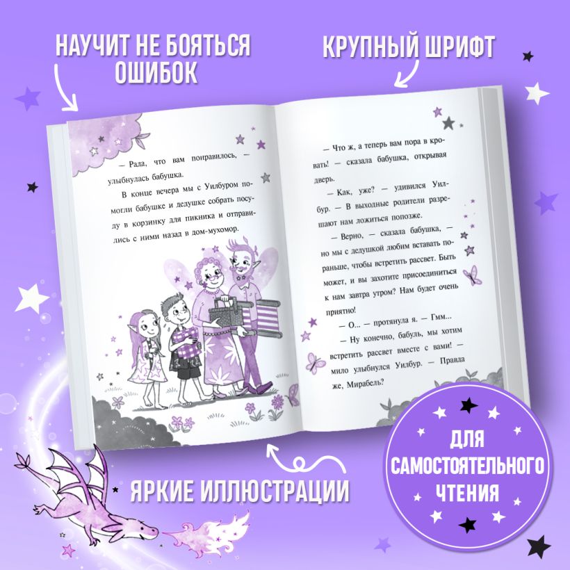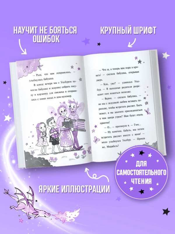 Чёрно-фиолетовые иллюстрации, белая бумага, удобный шрифт, историю легко читать самостоятельно — эта книга порадует и ребёнка, и родителей. Абсолютный бестселлер в России, который поможет детям полюбить читать и поверить в себя!