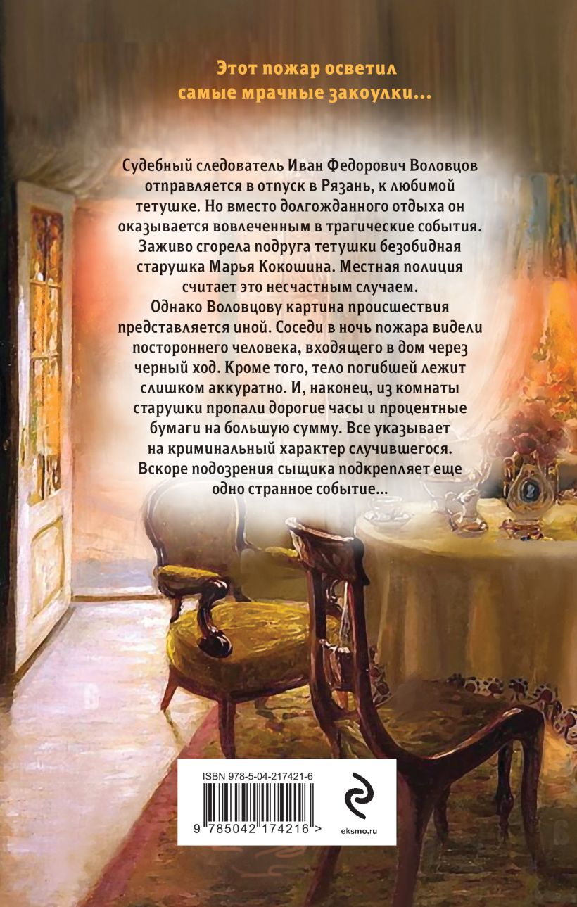 Судебный следователь Иван Федорович Воловцов отправляется в отпуск в Рязань, к любимой тетушке. Но вместо долгожданного отдыха он оказывается вовлеченным в трагические события. Заживо сгорела подруга тетушки, безобидная старушка Марья Кокошина. Местная полиция считает это несчастным случаем. Однако Воловцову картина происшествия представляется иной. Соседи в ночь пожара видели постороннего человека, входящего в дом через черный ход. Кроме того, тело погибшей лежит слишком аккуратно. И, наконец, из комнаты старушки пропали дорогие часы и процентные бумаги на большую сумму. Все указывает на криминальный характер случившегося. Вскоре подозрения сыщика подкрепляет еще одно странное событие…