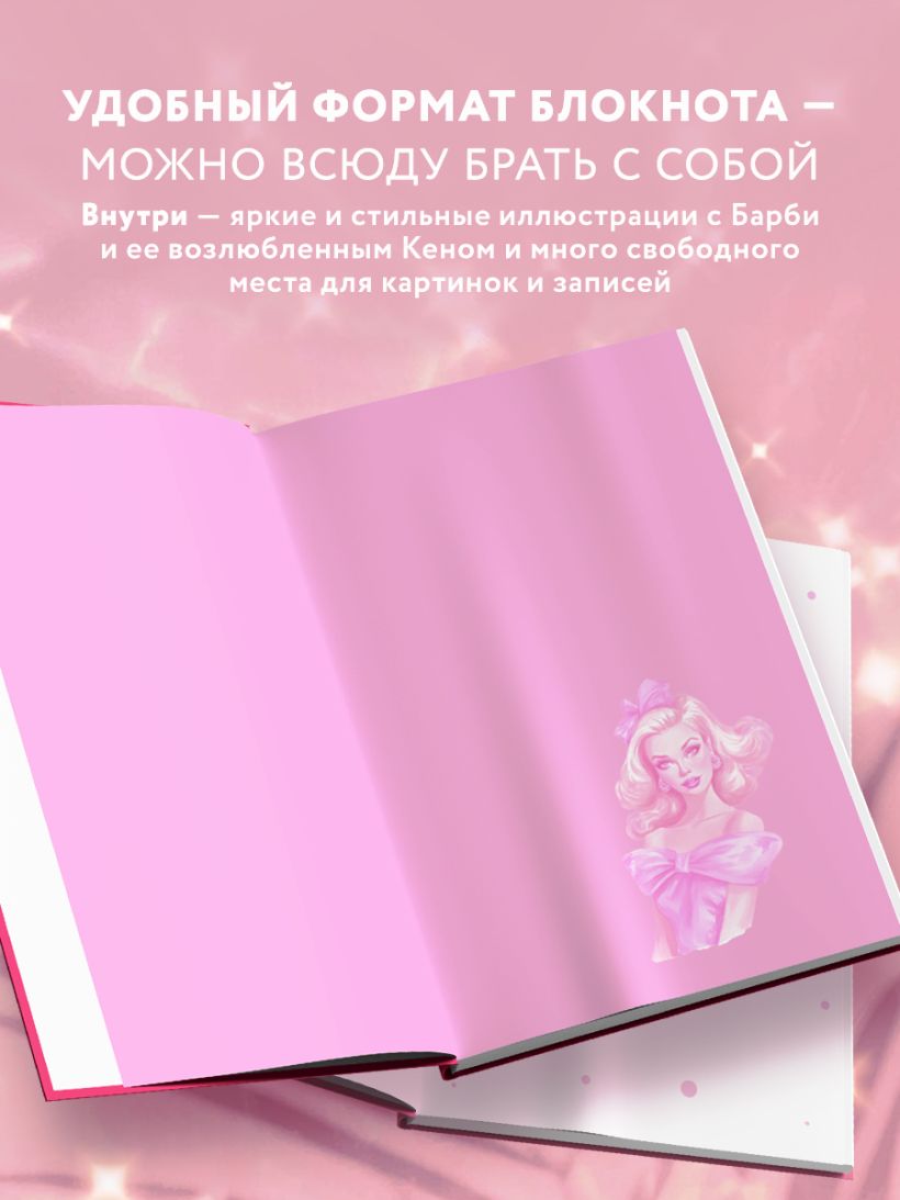 Очаровательный блокнот, вдохновленный легендарными куклами Барби и одноименным фильмом. Внутри — яркие иллюстрации в духе нулевых в розово-голубых цветах. Снаружи — Райан Гослинг, розовый кабриолет и сверкающие блестки! Выбери оформление под настроение и дополни этот дневник своими историями.