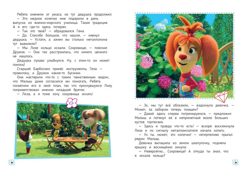 Хотите узнать, какое сокровище обнаружит Лиза, кто возьмет первенство в турнире по лени, кем на самом деле окажется необычная птичка Барбоска и как ребята попытаются сделать жизнь родителей более романтичной? Тогда скорее открывайте книгу и погружайтесь в удивительный мир любимых героев!