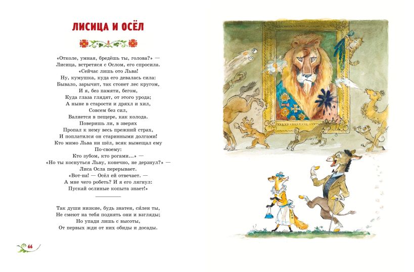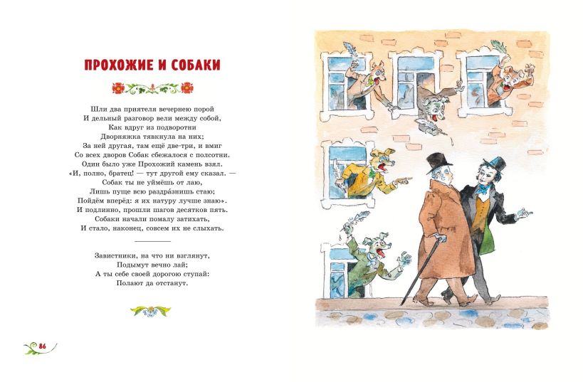 Иван Андреевич Крылов вошёл в историю русской литературы как автор басен, которые остаются популярными и актуальными на протяжении двух столетий. Множество написанных им строчек стали крылатыми фразами, и мы произносим их каждый день: «Ай моська! Знать, она сильна…», «Ты виноват уж тем, что хочется мне кушать…», «Да только воз и ныне там». Выразительные сюжеты, остроумные наблюдения, точные выводы — всё это делает басни И.А. Крылова подлинным учебником жизни, который весело и интересно читать.