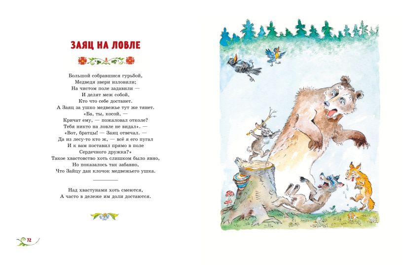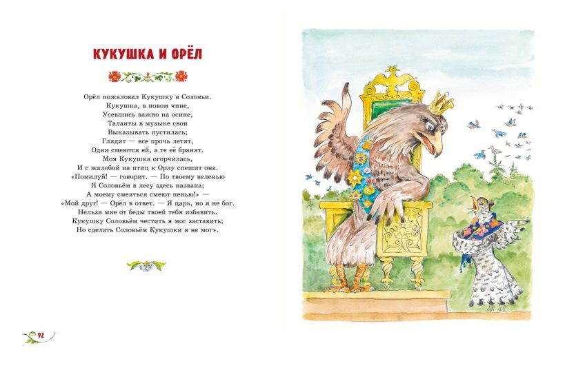 В книгу вошло свыше 60 произведений: как широко известные («Стрекоза и Муравей», «Ворона и Лисица», «Квартет»), так и публикующиеся довольно редко. Яркие, выразительные иллюстрации к басням создал народный художник России Анатолий Елисеев.