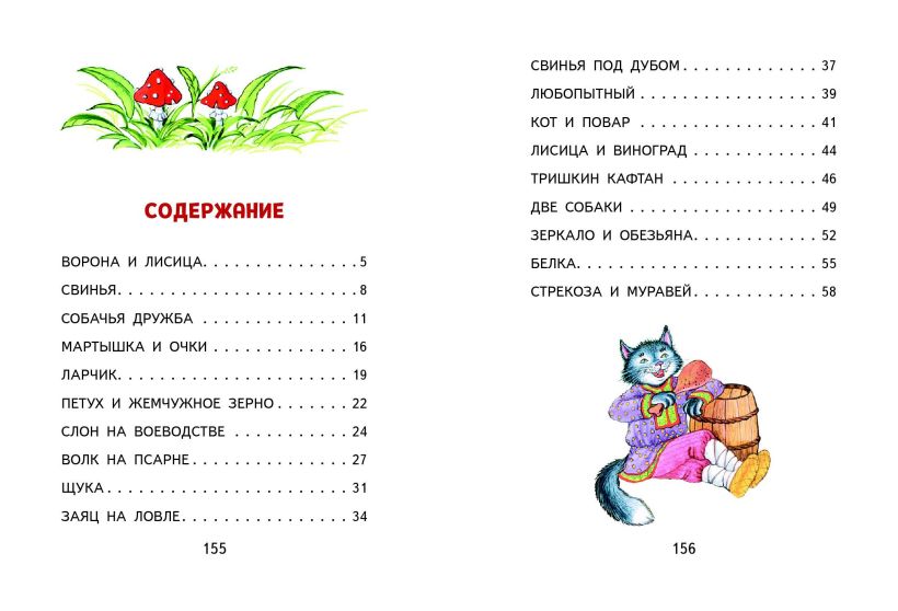 В книгу вошло 46 басен: «Ворона и лисица», «Свинья», «Мартышка и очки», «Волк на псарне» и другие.