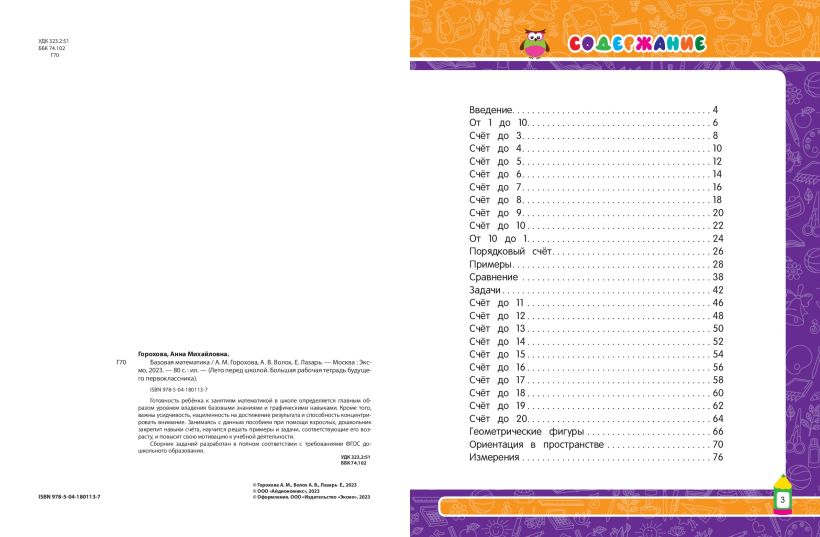 Данный сборник для подготовки к школе был разработан специально для того, чтобы облегчить детям адаптационный период, совпадающий с изучением базовых понятий математики. Первоклассникам, только приступающим к систематической учебной деятельности, зачастую трудно даётся математика. Это происходит не столько из-за сложности материала, сколько по причине новой, непривычной школьной обстановки и возросших требований. Занимаясь с этим пособием, будущий первоклассник: