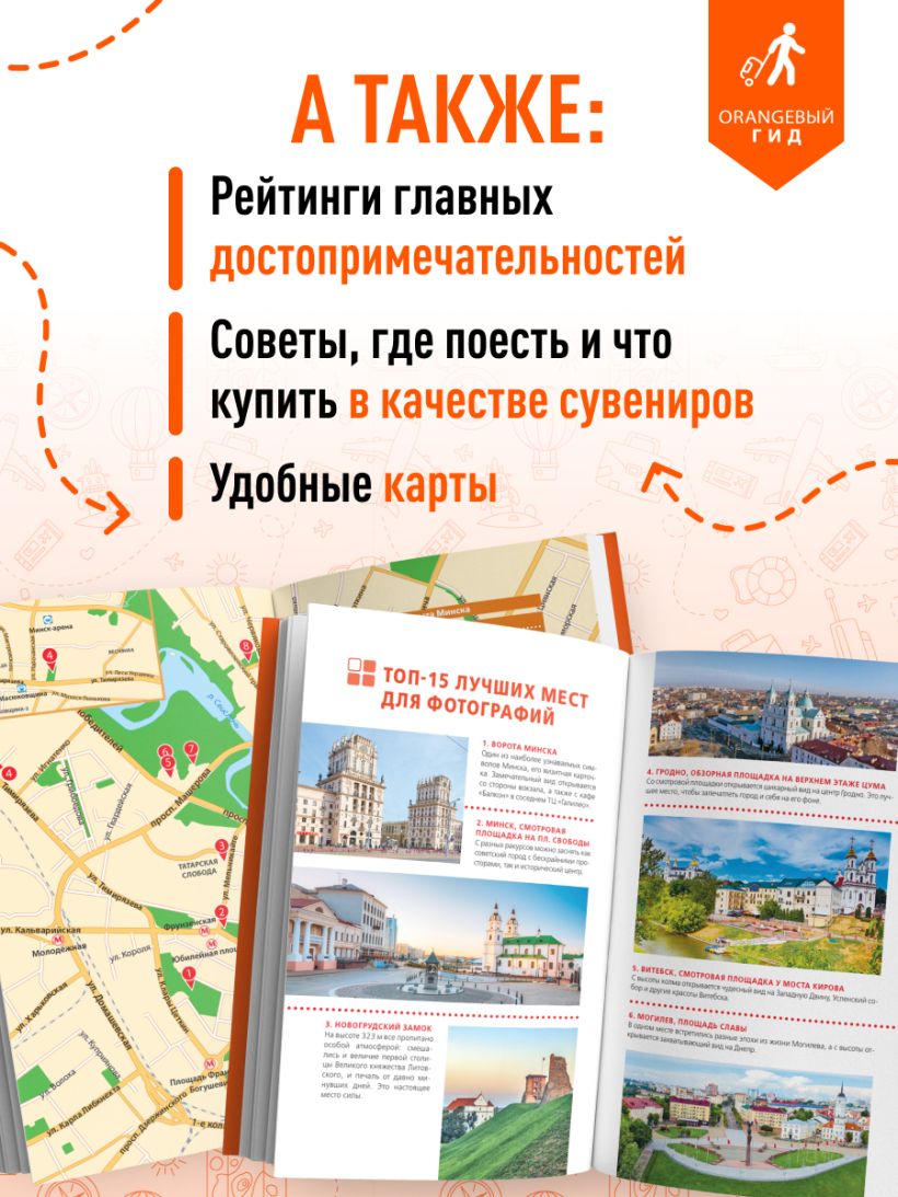 В нем содержится актуальная и полезная информация о главных городах страны, различные маршруты на любой вкус, подсказки, что делать, если идет дождь, или где искать лучшие смотровые площадки, а также множество полезных авторских советов. Вас ждут прогулки по Минску, Бресту, Витебску, Гомелю, Гродно, Могилеву, а также информация про самые красивые замки, храмы и заповедники. Осталось только выбрать маршрут на свой вкус! Сориентироваться на местности помогут удобные карты, расположенные на страницах путеводителя.