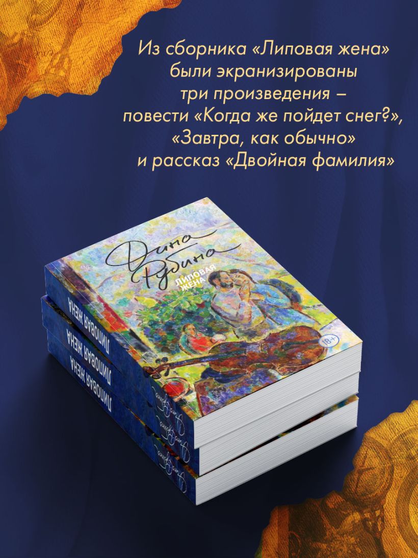Дина Рубина — современный прозаик, лауреат российской премии «Большая книга». Из сборника «Липовая жена» были экранизированы три произведения — повести «Когда же пойдет снег?», «Завтра, как обычно» и рассказ «Двойная фамилия».