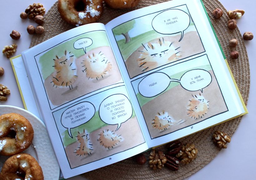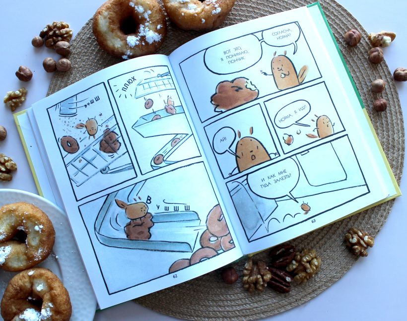 Хорошее начало дня! Похоже, придётся есть только орехи... Но не так просто остановить решительных белок на пути к пончику!