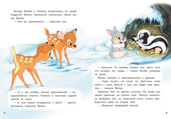 Лес полон чудес, а также добрых друзей — это точно знают поклонники мультфильма «Бемби» от анимационной студии Disney! Новые истории о приключениях Бемби и его верных друзей ждут вас в этом издании. Что помогло оленёнку спасти сестёр Топотуна, какое природное явление наблюдали друзья в ночном лесу, как зверята стали настоящими детективами и раскрыли секрет таинственных следов — всё это, а также многое другое вы узнаете благодаря сборнику новых историй Disney. Прекрасный вечер за семейным чтением обеспечен!