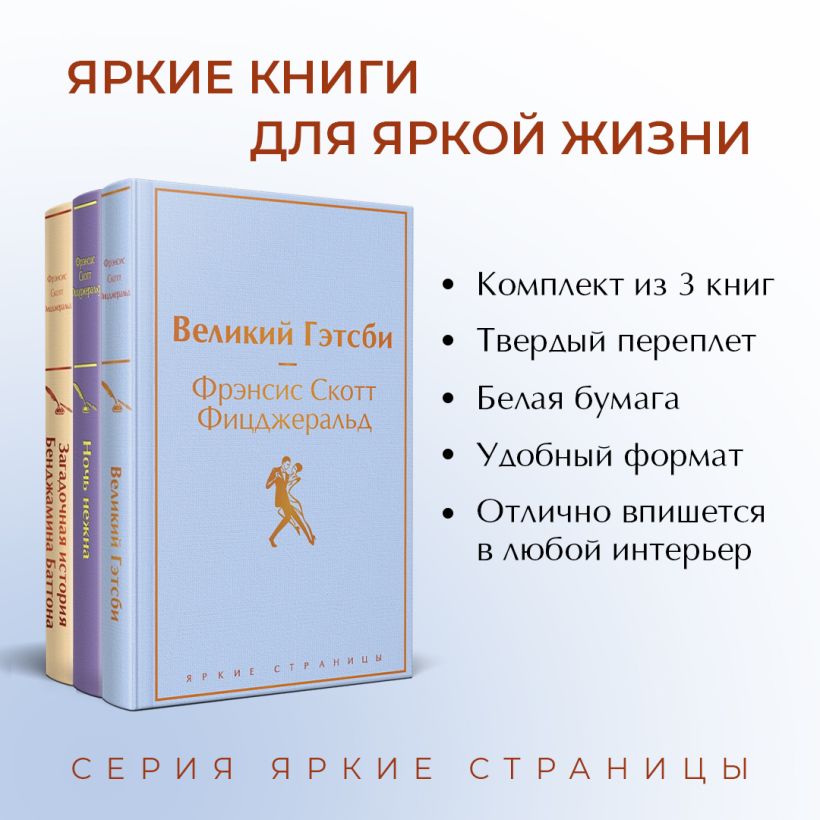 Бессмертные книги Ф.С. Фицджеральда (комплект из 3-х книг: "Великий Гэтсби", "Ночь нежна", "Загадочная история Бенджамина Баттона")