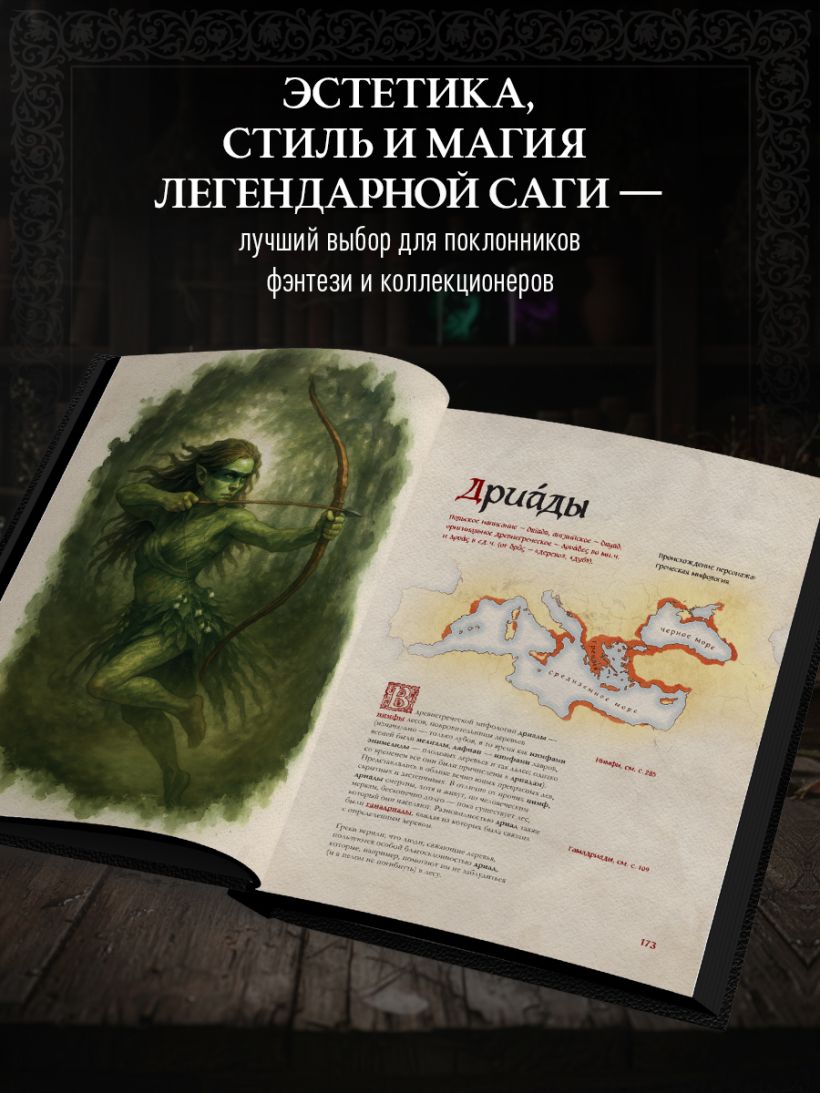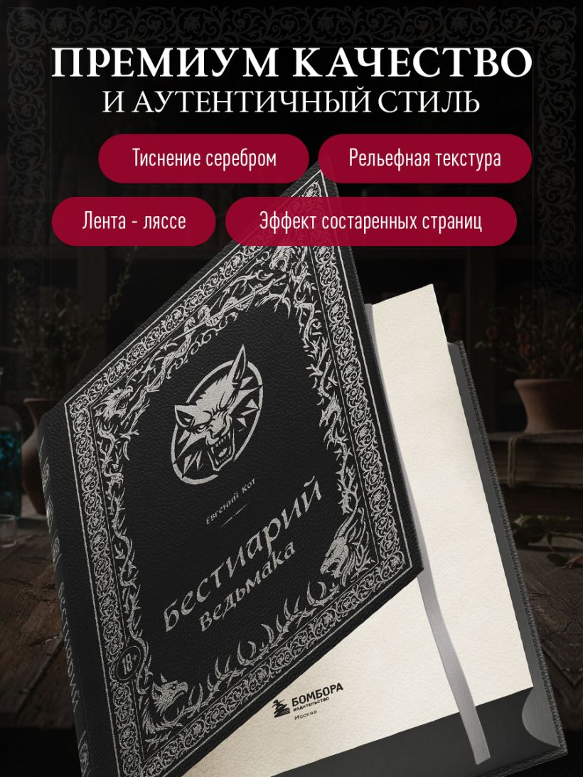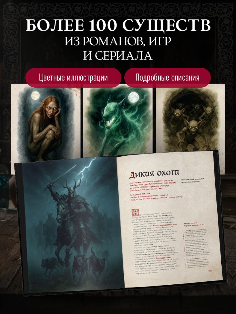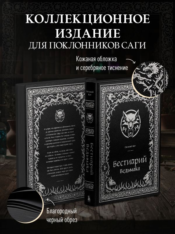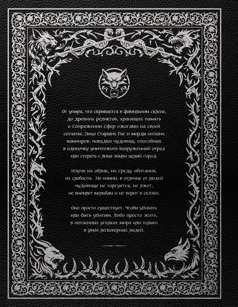 Эта книга — настоящее сокровище для поклонников вселенной Ведьмака. Шелест плотных страниц (с рукописными пометками на полях от бывшего владельца-ведьмака) перенесет тебя в душные топи Велена или на морозные берега Скеллиге. А качественная цветная печать позволит рассмотреть всех чудовищ очень пристально, чтобы ничего не упустить! Про красоту обложки (которая, кстати, на ощупь как шкура виверны) и говорить нечего! Ну, и чтобы ты всегда знал, на какой твари остановился, и не приходилось загибать углы страниц — черная атласная лента-ляссе!