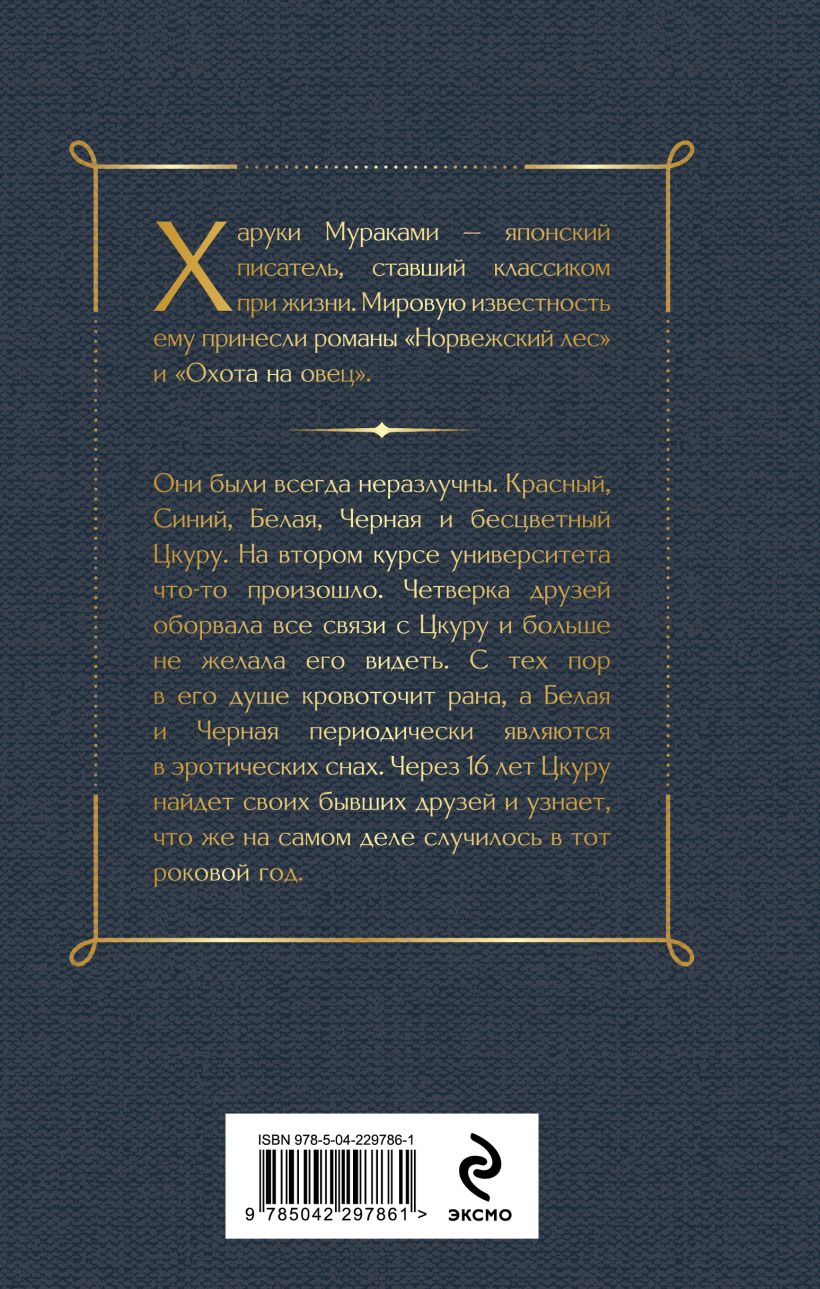 Харуки Мураками — японский писатель, ставший классиком при жизни. Мировую известность ему принесли романы "Норвежский лес", "Охота на овец" и "Хроники заводной птицы". Спустя 26 лет Мураками вернулся к жанру лирический реализм. В свет вышел "Бесцветный Цкуру Тадзаки и годы его странствий".