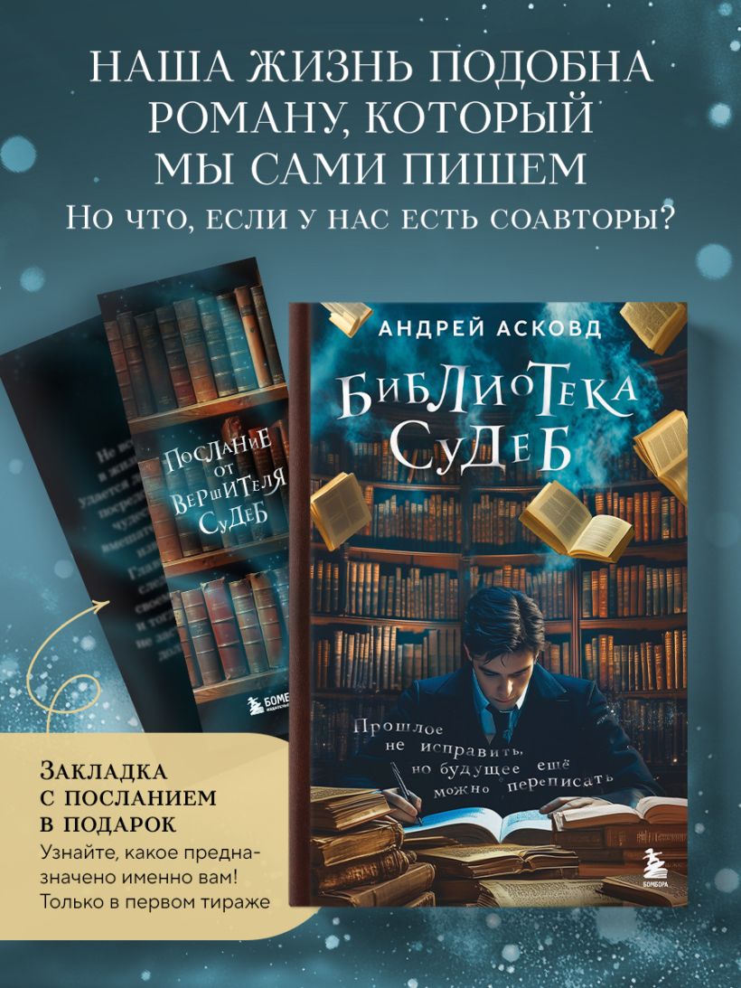 Творчество Андрея Асковда хорошо известно российскому читателю по серии его книг о забавных приключениях двух мальчишек — «Как мы с Вовкой». На этот раз автор обратился к захватывающей теме: жизни после жизни. Его новый роман в жанре магического реализма рассказывает о не признанном на Земле писателе, которому удалось-таки сделать отличную карьеру, но только после того, как он... перебрался в другой мир, который удивительным образом отсылает нас к реалиям советского прошлого. Кто же победит в схватке между добром и злом, честью и подлостью, верой в чудо и неверием в собственные силы. Лихо закрученный сюжет, пронизывающие до мурашек истории, легкость и ирония в фирменном авторском стиле Андрея Асковда и, конечно, таинственная библиотека, судьба которой вызывает массу вопросов как у светлых, так и у темных сил — чтение этой книги станет для вас по-настоящему захватывающим испытанием, а настоящие «исследователи будущего» смогут отыскать в первом тираже атмосферную закладку с особенным посланием от Вершителя Судеб.