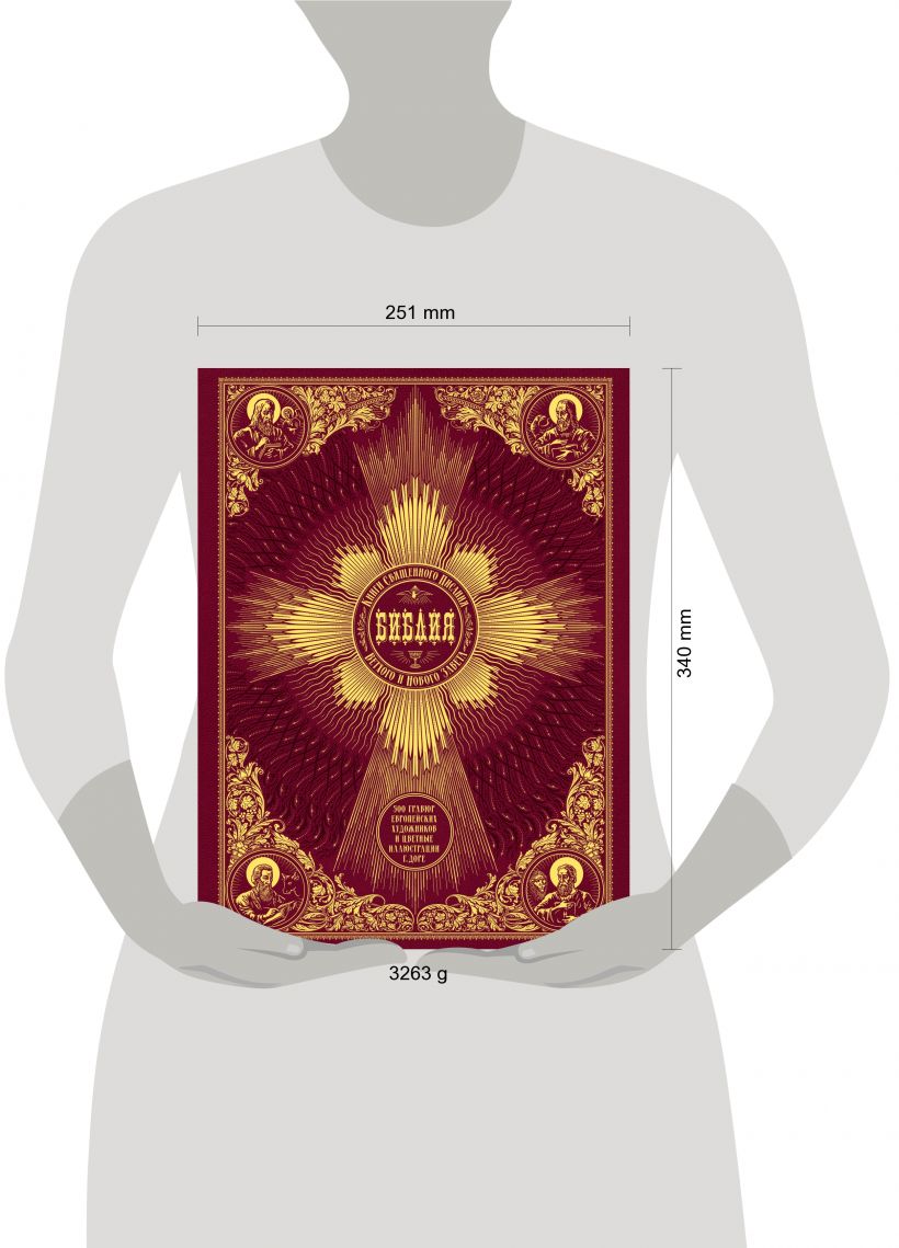 Это иллюстрированное издание полного текста Библии на русском языке - уникально. Здесь собраны более 500 реалистических гравюр знаменитых европейских мастеров, созданных на протяжении 500 лет традиции художественного иллюстрирования Библии. С большинством этих гравюр наши соотечественники познакомятся впервые. Также впервые в мире классические, непревзойденные иллюстрации Гюстава Доре представлены в цветном исполнении. Богатое иллюстрированное издание рассчитано на людей любого возраста. Качественный переплет, уникальные иллюстрации, увеличенный формат книги делают предлагаемое читателю полное издание Книг Священного Писания Ветхого и Нового Завета значимым и эксклюзивным подарком для самых важных событий в жизни.