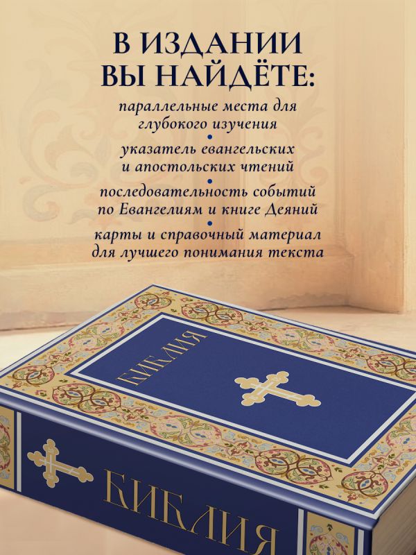 Библия. Книги Священного Писания Ветхого и Нового Завета с параллельными местами и приложениями. Полное издание, 77 книг. С неканоническими книгами. В Синодальном переводе. На русском языке. Православная. РПЦ. По благословению Святейшего Патриарха Московского и всея Руси Кирилла. С параллельными местами, указателем евангельских и апостольских церковных чтений, последовательностью евангельских событий по четырем евангелистам, последовательностью событий по книге Деяний святых апостолов, картами и другой важной справочной информацией. Большой формат. Крупный шрифт. Твердый переплет.