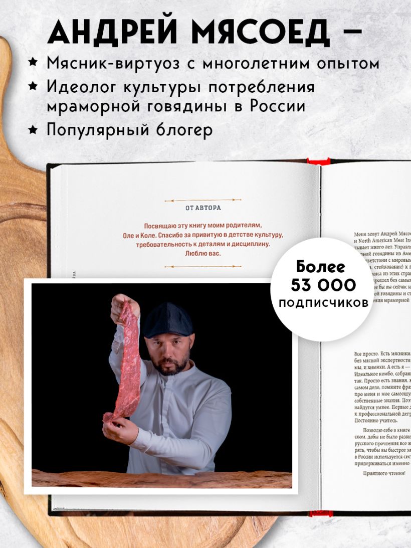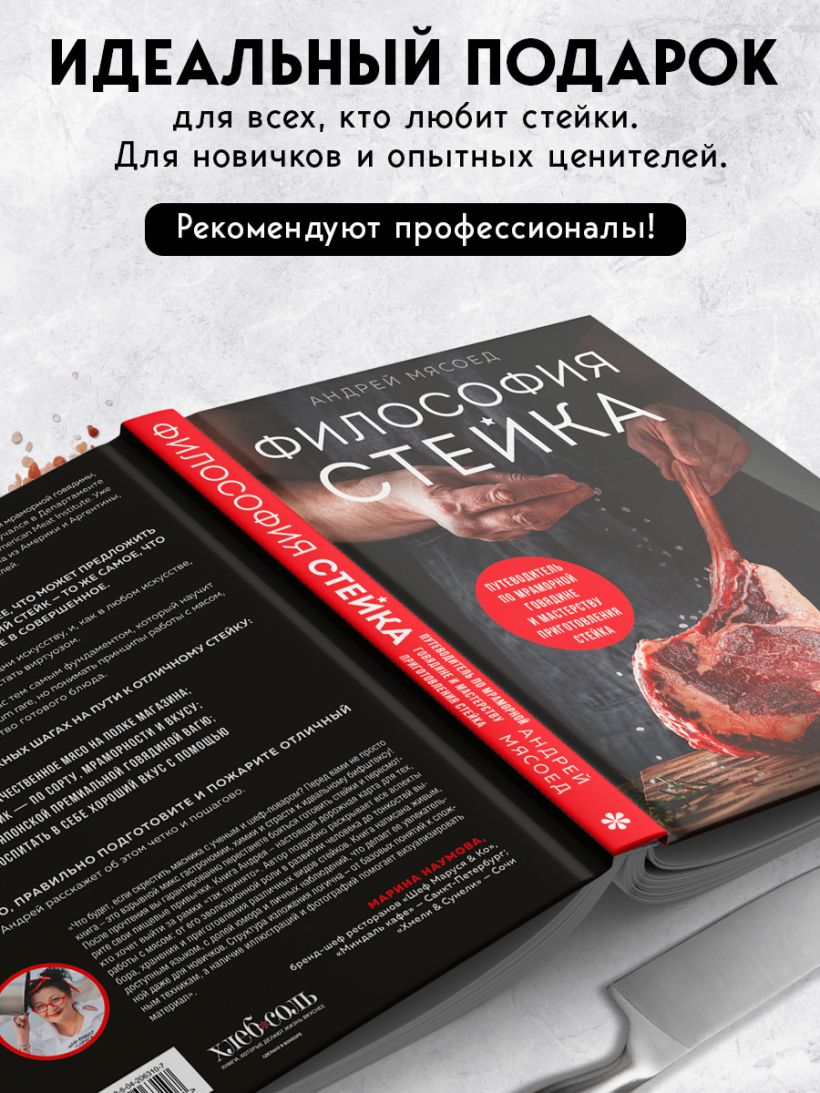 На самом деле качественный стейк — это не просто еда, но своего рода философия и область обширного знания. Если вы не готовы идти на компромисс и хотите получить лучшее из возможного, книга мясника и специалиста по мраморной говядине Андрея Мясоеда откроет путь к мастерству приготовления стейка.