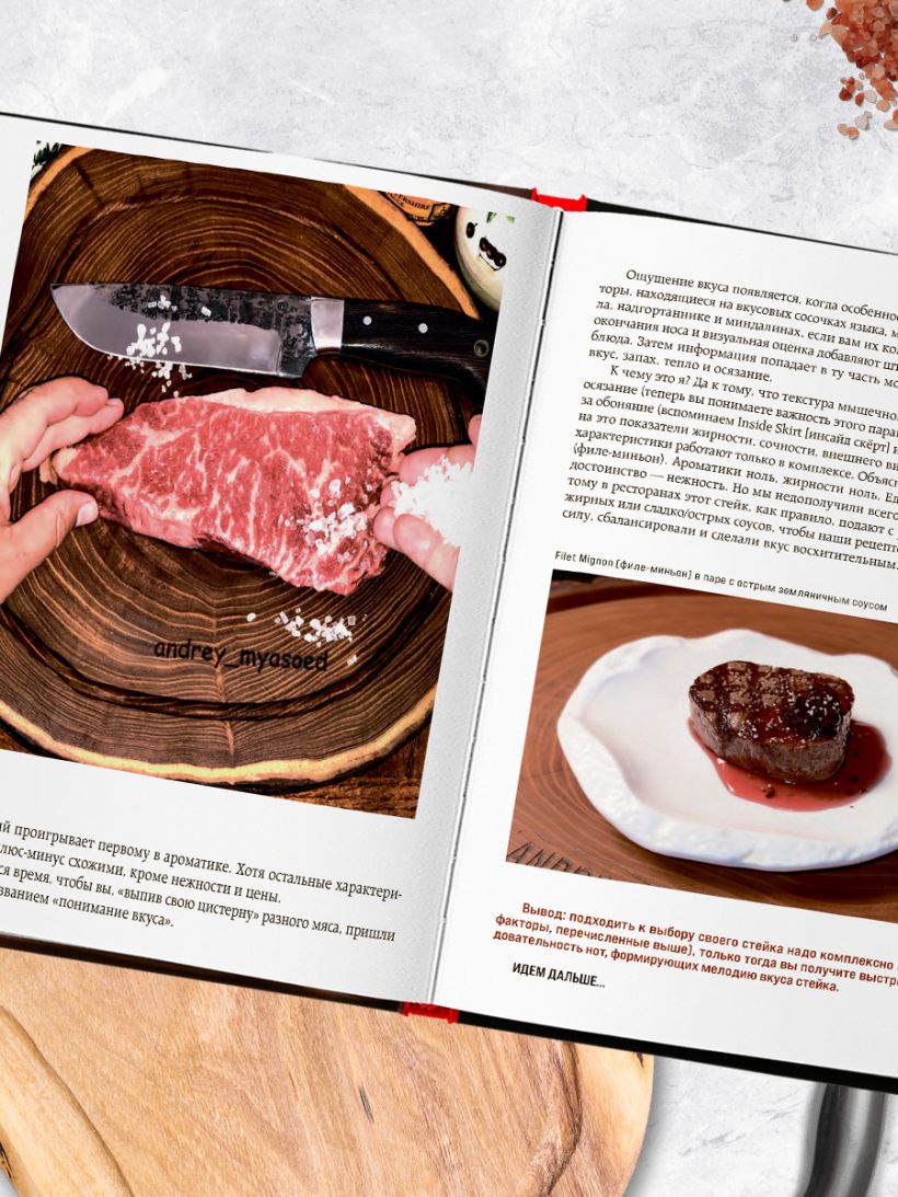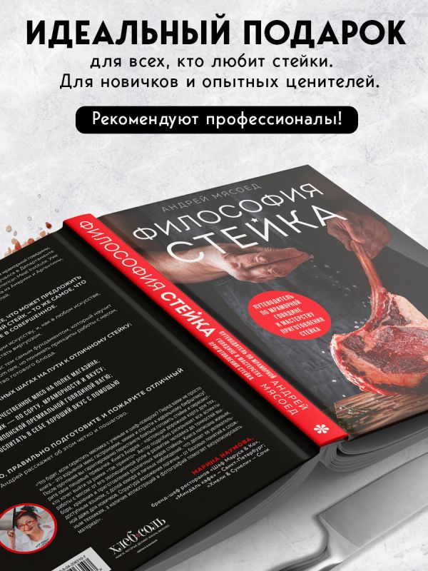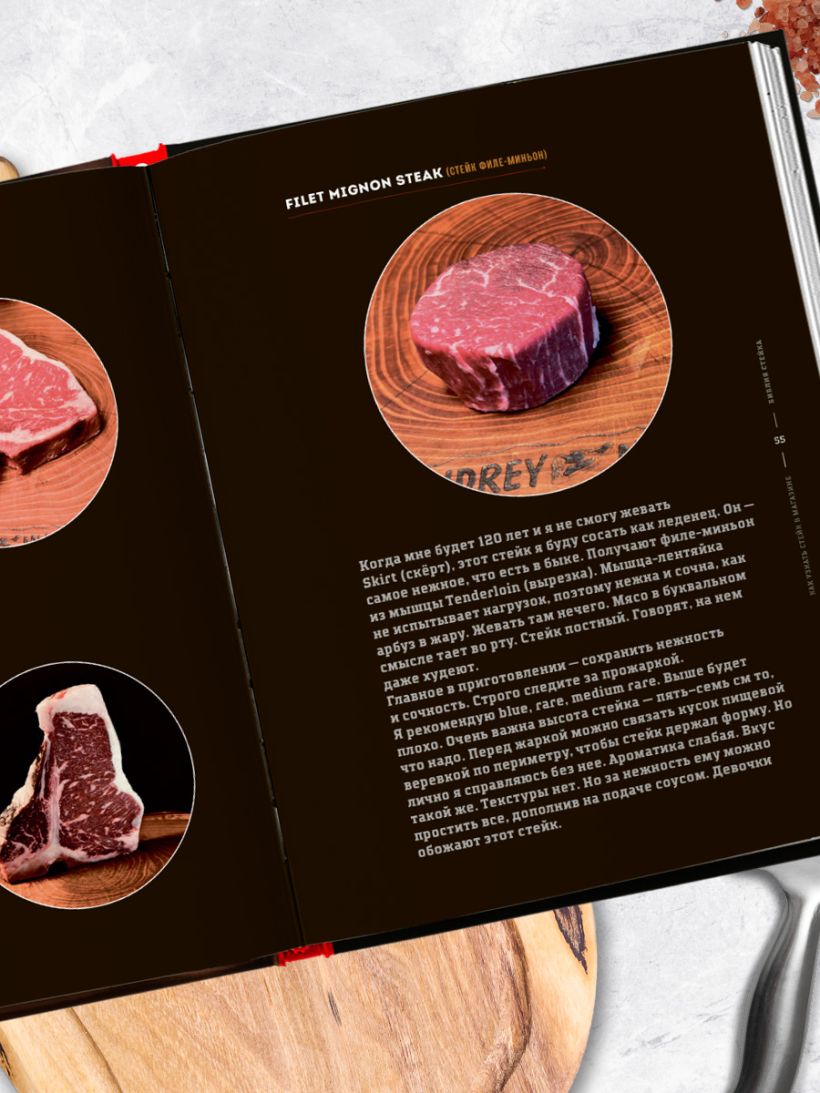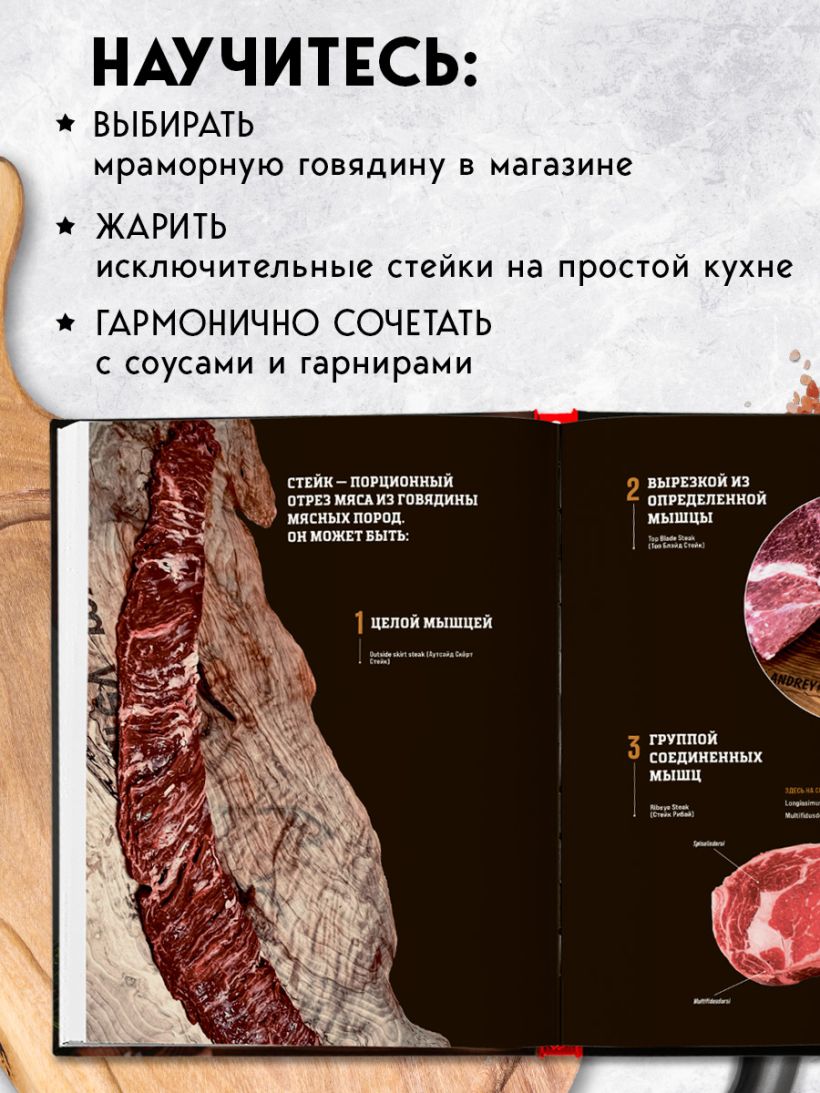 Эта роскошная книга — идеальный подарок для взыскательного любителя стейков, который хочет уверенно готовить мясо на своей кухне и получать истинное удовольствие от каждого кусочка.