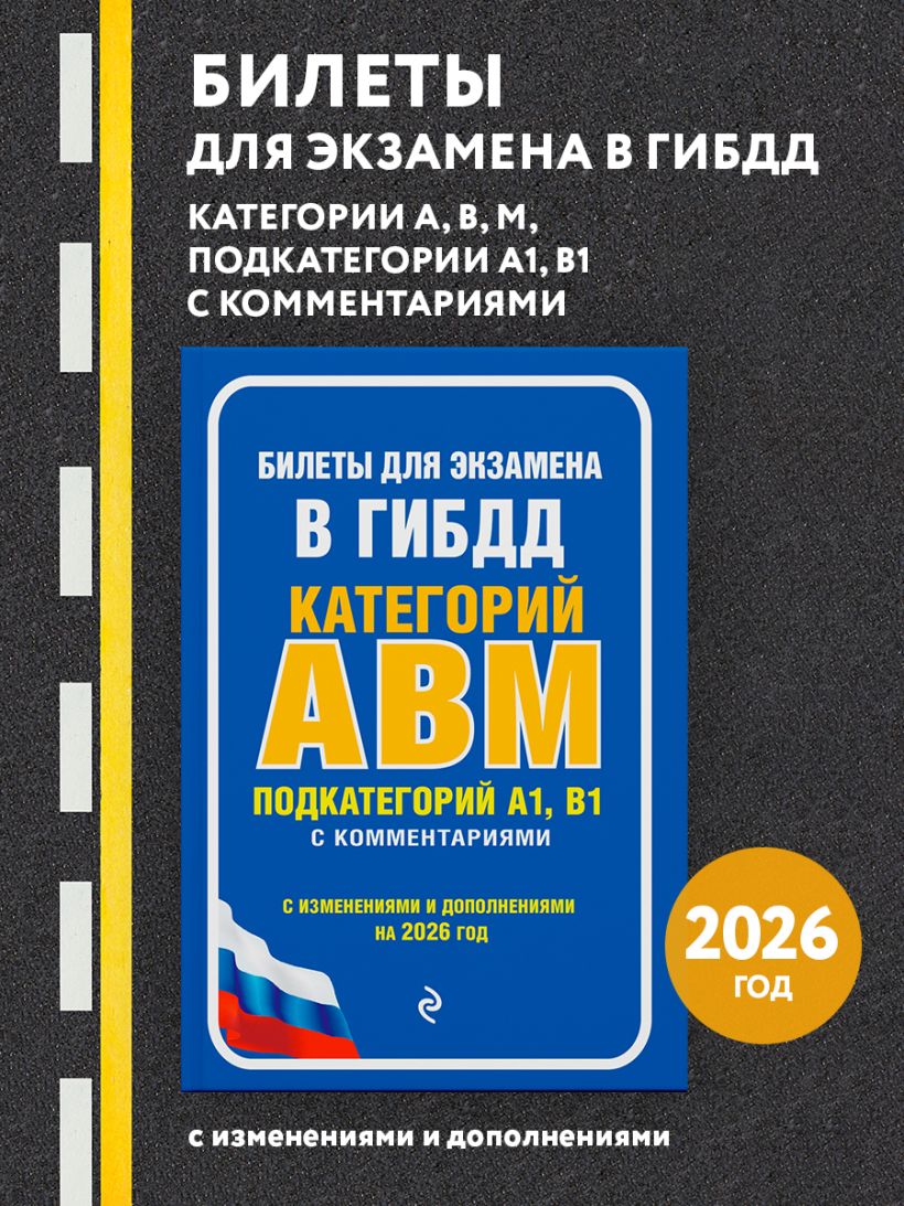 Билеты для экзамена в ГИБДД категории А, В, M, подкатегории A1, B1 с комментариями (с изм. и доп. на 2026 г.)