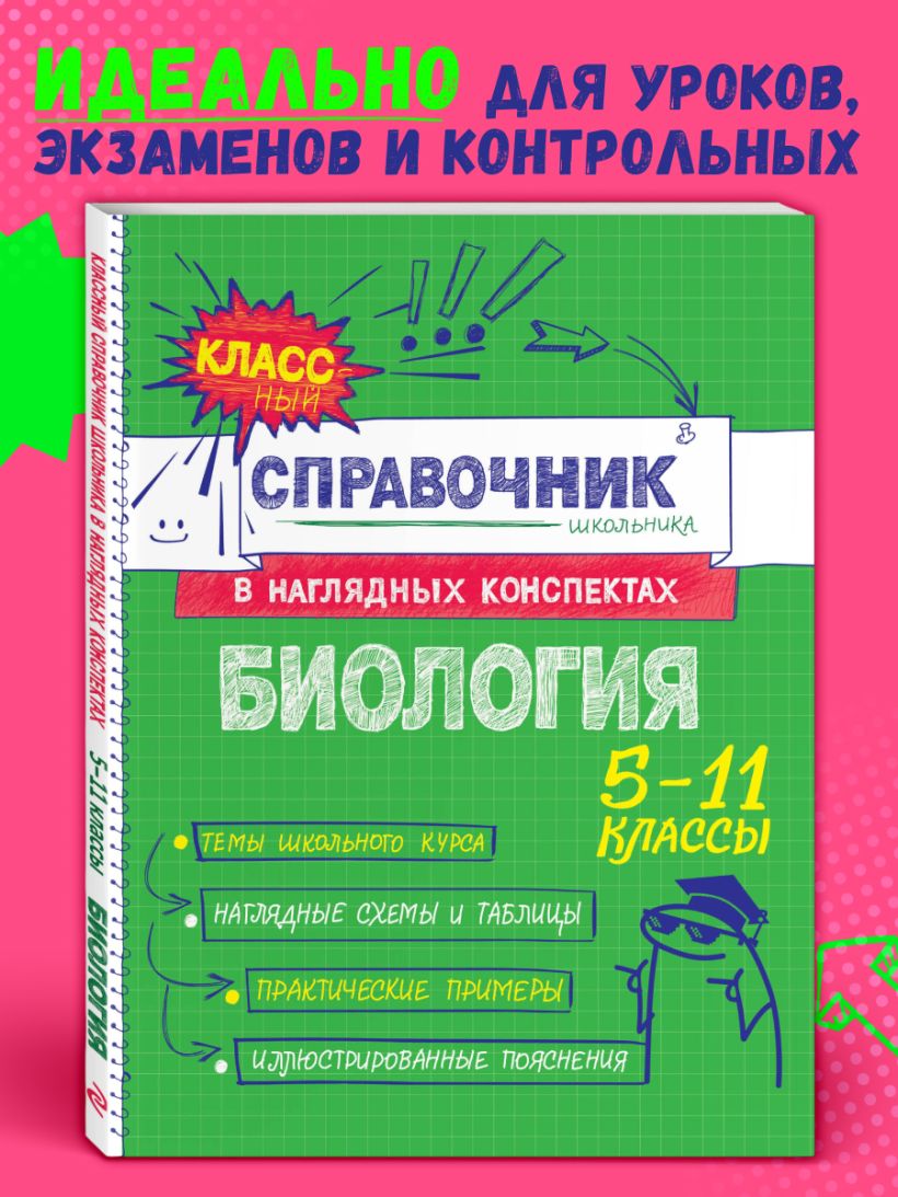 Благодаря наглядной подаче теории с примерами, схемами, а также забавными рисунками, текст становится доступным и интересным. Визуальный подход обеспечивает легкость восприятия и запоминания информации, ведь она оформлена в виде конспектов, словно ученик писал их сам. Всевозможные иллюстрации и места для собственных примеров и примечаний помогут сделать процесс обучения максимально простым и приятным! А при желании можно взять маркеры и сделать свой конспект еще более уникальным и персонализированным!