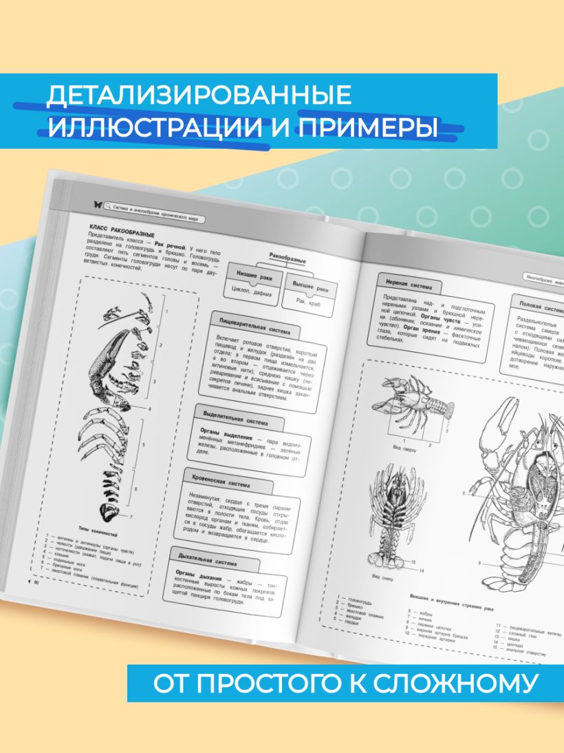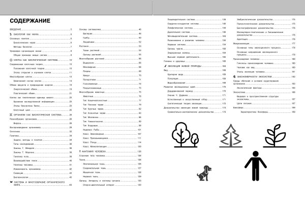Там есть и про биосферу ,и про анатомию человека и других животных,и про устройство расстений,и про царства....