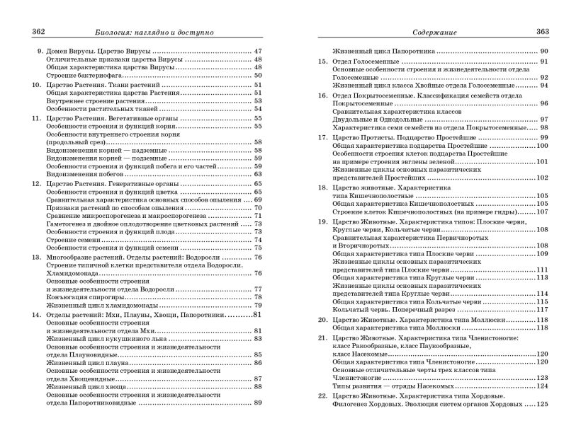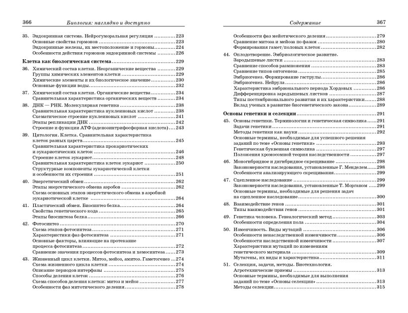 В издании вы найдёте сведения по разделам: «Биология как наука», «Основы экологии», «Разнообразие органического мира», «Организм человека», «Клетка как биологическая система», «Основы генетики и селекции», «Теория эволюции», «Биосфера».