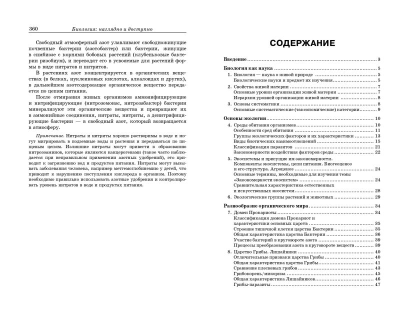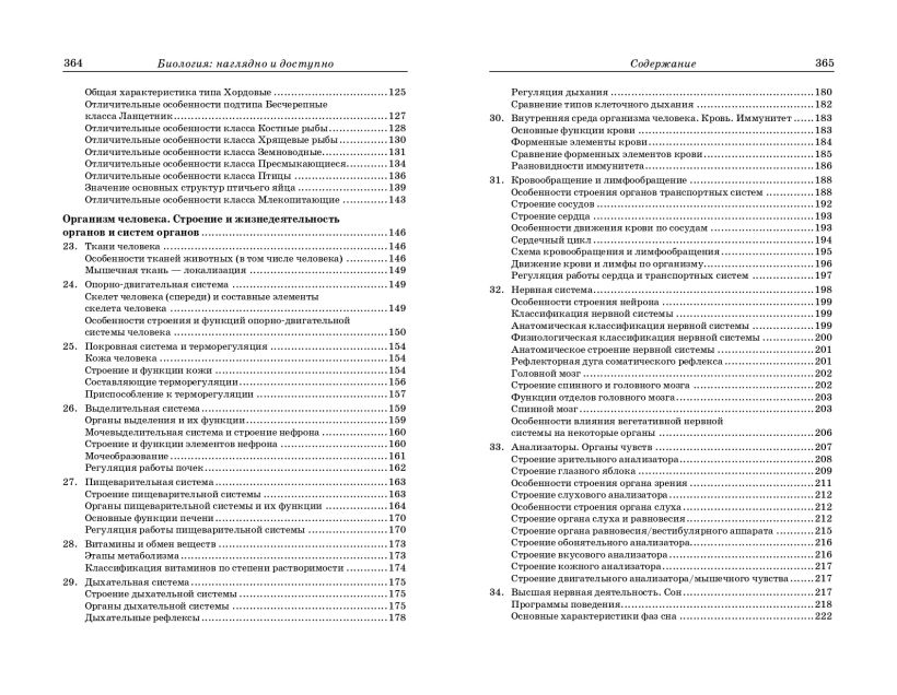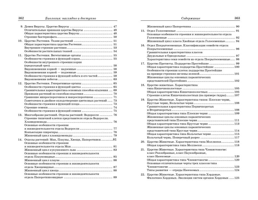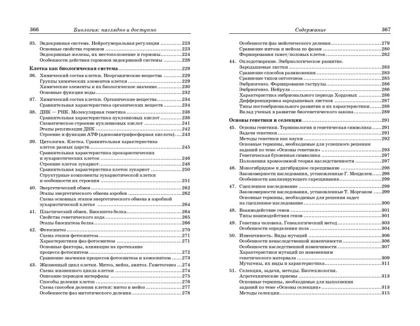 В издании вы найдёте сведения по разделам: «Биология как наука», «Основы экологии», «Разнообразие органического мира», «Организм человека», «Клетка как биологическая система», «Основы генетики и селекции», «Теория эволюции», «Биосфера».