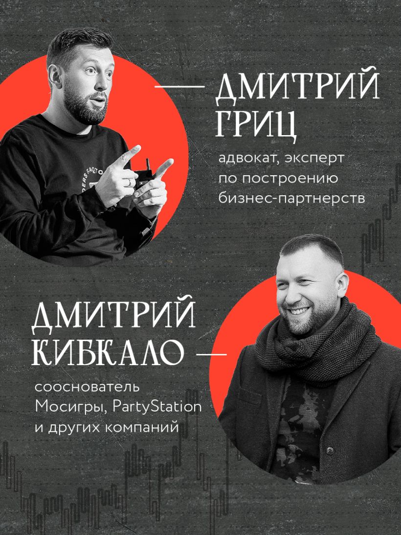Авторы — Дмитрий Гриц, адвокат, автор методики партнерских сессий, проработавший более 1600 партнерств, и Дмитрий Кибкало, предприниматель и инвестор, сооснователь Мосигры, PartyStation и других компаний.