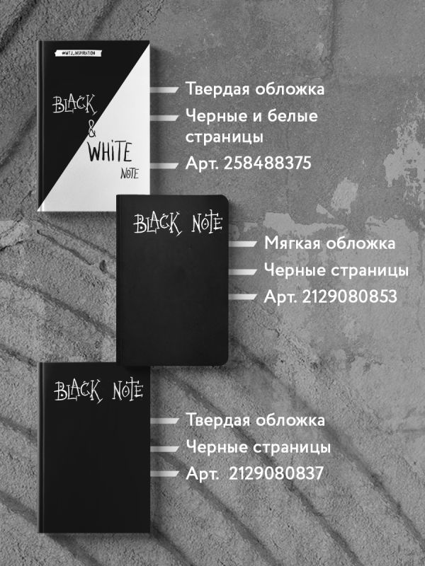 У Black Note все страницы полностью черные! Попробуй порисовать в нем или написать что-то белой/серебряной/золотой ручкой или карандашом — сразу почувствуешь магию черной бумаги, ведь она любые каракули превратит в произведение искусства. Можно даже вести его как дневник, наполняя важными мыслями, секретами и самыми темными желаниями…