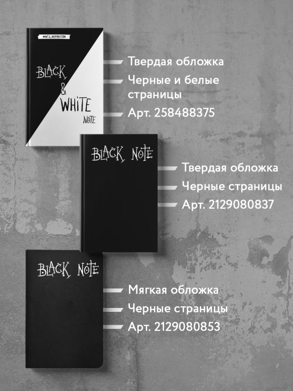 У Black Note все страницы полностью черные! Попробуй порисовать в нем или написать что-то белой/серебряной/золотой ручкой или карандашом — сразу почувствуешь магию черной бумаги, ведь она любые каракули превратит в произведение искусства. Можно даже вести его как дневник, наполняя важными мыслями, секретами и самыми темными желаниями…