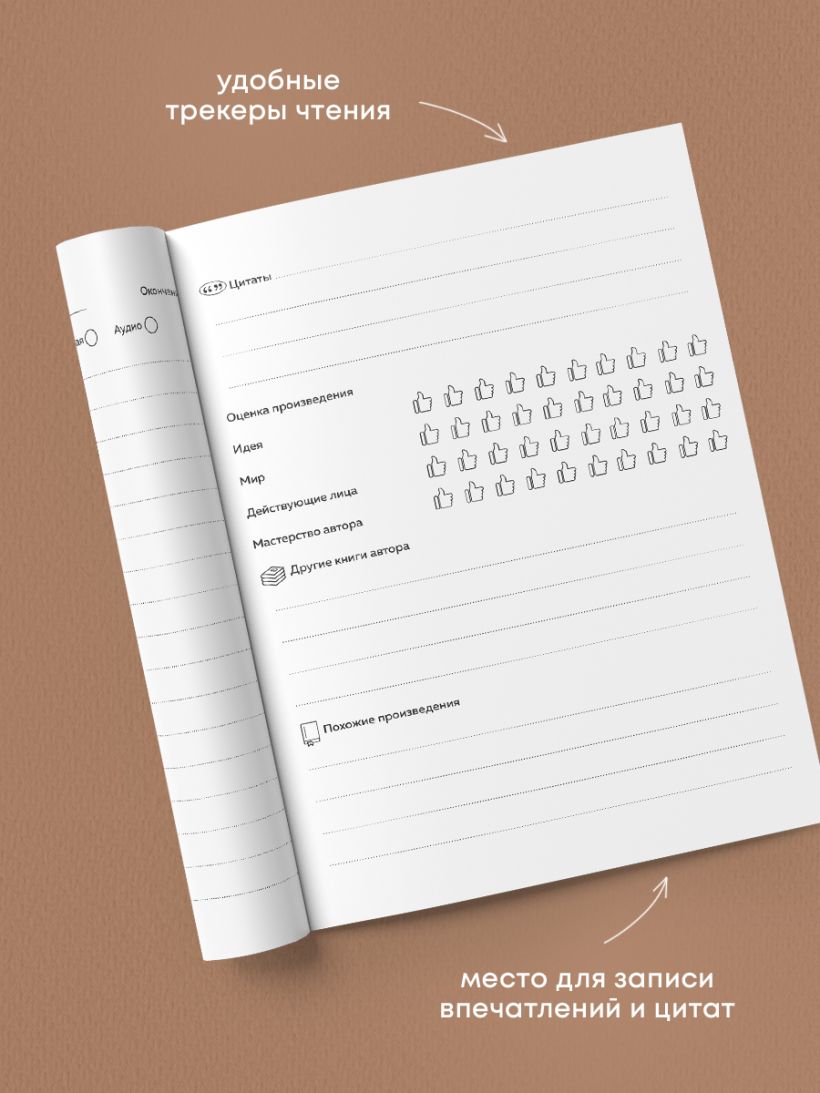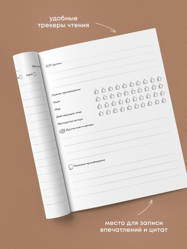 Для кого: - для тех, кто очень любит книги; - для тех, кто много читает; - для тех, кто хочет навсегда сохранить впечатления от каждой книги; - для тех, кто любит придумывать собственные интересные и захватывающие истории. В дневнике вас ждут: - пустые строки, где вы сможете составить список книг, которые планируете прочитать; - страницы, разделенные на колонки, куда вы сможете внести свои пункты для заполнения; - яркие иллюстрации, которые дополняют страницы. Еще вас ждет отличный бонус в виде набора ярких стикеров. Технические параметры: - удобный формат А5 (162×210 мм); - 64 страницы на офсетной бумаге; - стильная обложка из переплетного картона; - расчерченный блок для тех, кто хочет выразить свою индивидуальность. Читательский дневник станет отличным подарком для каждого любителя книг. Также вас порадует качество материалов, из которых выполнен дневник. Плотная обложка и страницы помогут сохранить записанное в него на долгие годы.