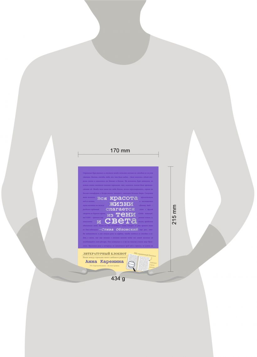 "Анна Каренина" – выдающийся роман Льва Толстого о любви и вечных ценностях жизни. Литературный блокнот напомнит вам о нем. Строки блокнота – это главы романа. Вспоминайте замечательный текст великого автора и пишите между строками своего любимого литературного произведения.