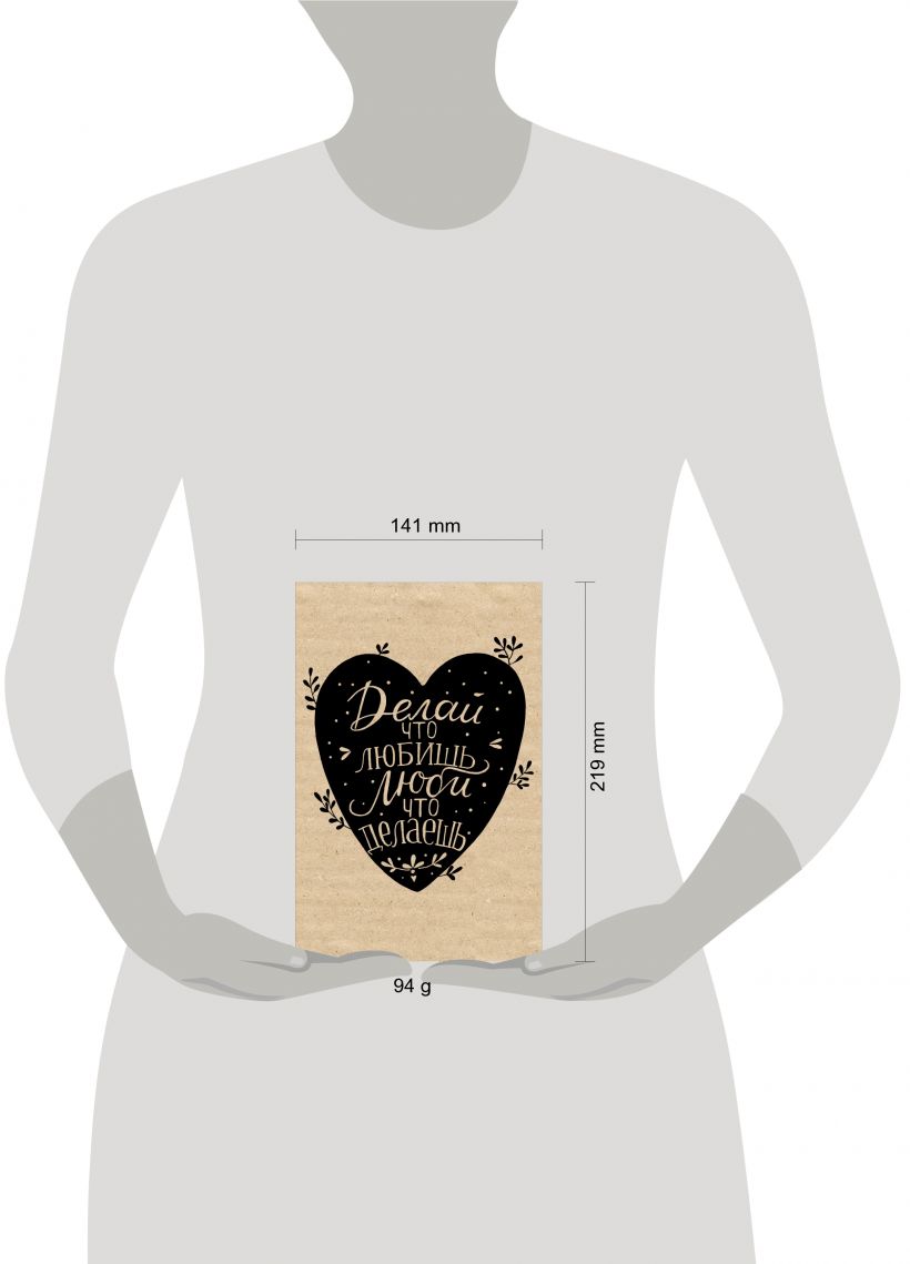 Леттеринг выполнен фольгой на крафтовой обложке. Блок с рисунками на выборочных полосах. Приятная на ощупь бумага дополняет стиль блокнота.
