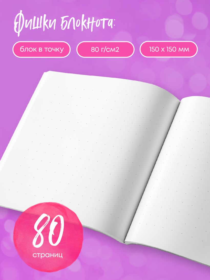 Свежеиспеченный хлеб, подаренный букет, вкусный десерт – все эти вещи раскрывают настоящих нас в моменте. На блокнотах-коллажах запечатлены именно такие короткие мгновения из жизни. Каждое – окно в моменты, когда нам было по-настоящему радостно, моменты, которые очень легко потерять в суматохе ежедневности. Новый удобный формат 150 х 150 мм в сочетании со стильными дизайнерскими решениями точно сделает использование комфортным и приятным. Давно полюбившийся всем блок в точку гарантирует, что блокнот подойдет для любых целей: рисования, конспектирования, ведения личного дневника и многого другого. Компактный формат означает, что вы можете использовать блокнот где угодно, будь то дома, в кафе, на учебе или даже на улице.