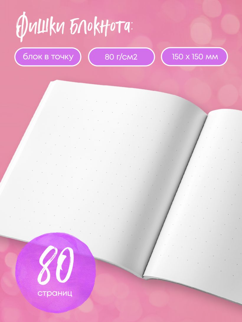 Свежеиспеченный хлеб, подаренный букет, вкусный десерт – все эти вещи раскрывают настоящих нас в моменте. На блокнотах-коллажах запечатлены именно такие короткие мгновения из жизни. Каждое – окно в моменты, когда нам было по-настоящему радостно, моменты, которые очень легко потерять в суматохе ежедневности. Новый удобный формат 150 х 150 мм в сочетании со стильными дизайнерскими решениями точно сделает использование комфортным и приятным. Давно полюбившийся всем блок в точку гарантирует, что блокнот подойдет для любых целей: рисования, конспектирования, ведения личного дневника и многого другого. Компактный формат означает, что вы можете использовать блокнот где угодно, будь то дома, в кафе, на учебе или даже на улице.