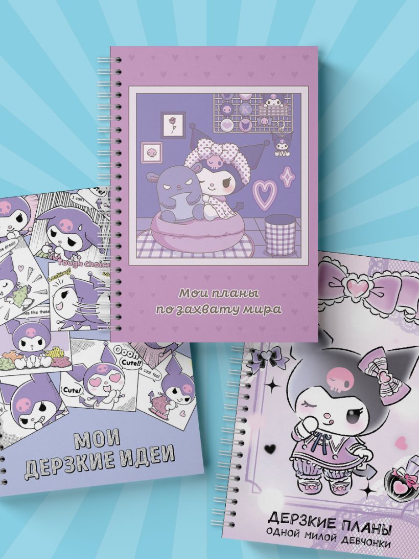 Дерзкий блокнот с Куроми — лучший помощник в делах для школьника и студента, который хочет подчеркнуть свою индивидуальность. Возьмите его с собой в путешествие, в парк, на лекцию. Пишите цели, планы, делайте творческие зарисовки, фиксируйте идеи, ловите музу, где бы вы ни находились. Вместе со злодейкой Куроми вы сможете все-все-все!