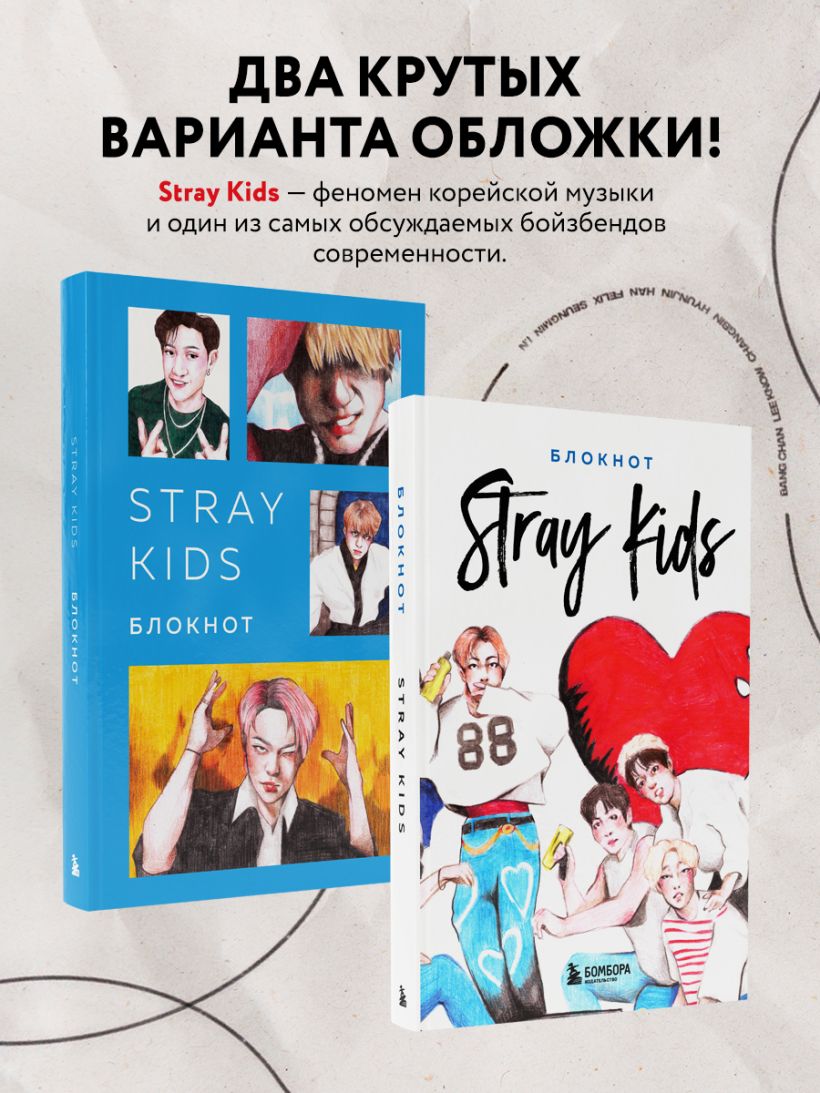 Группа Stray Kids — настоящий музыкальный феномен. За шесть лет корейский бойзбенд успел добиться небывалых высот и стать одной из самых популярных K-pop групп в мире. Коллектив состоит из восьми участников, которые с завидной регулярностью разрывают чарты новыми хитами и радуют поклонников клипами. Этот яркий и привлекательный блокнот в мягком переплете выпущен в двух оформлениях и может стать отличным подарком для каждого поклонника корейской популярной культуры. Выберите тот вариант, что вам по душе, или соберите всю коллекцию. Записывайте сюда строчки из любимых песен группы или просто фиксируйте планы на день.