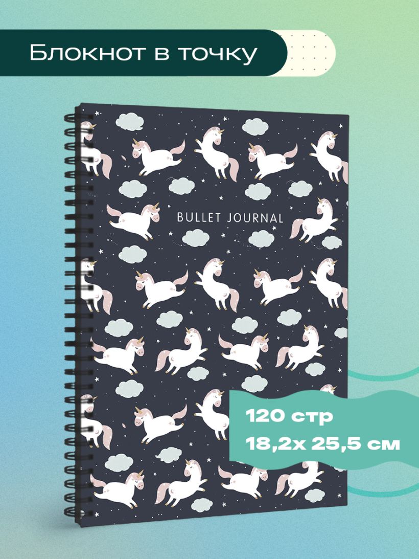 Блокнот в точку: Bullet Journal (единороги, 120 c., пружина)