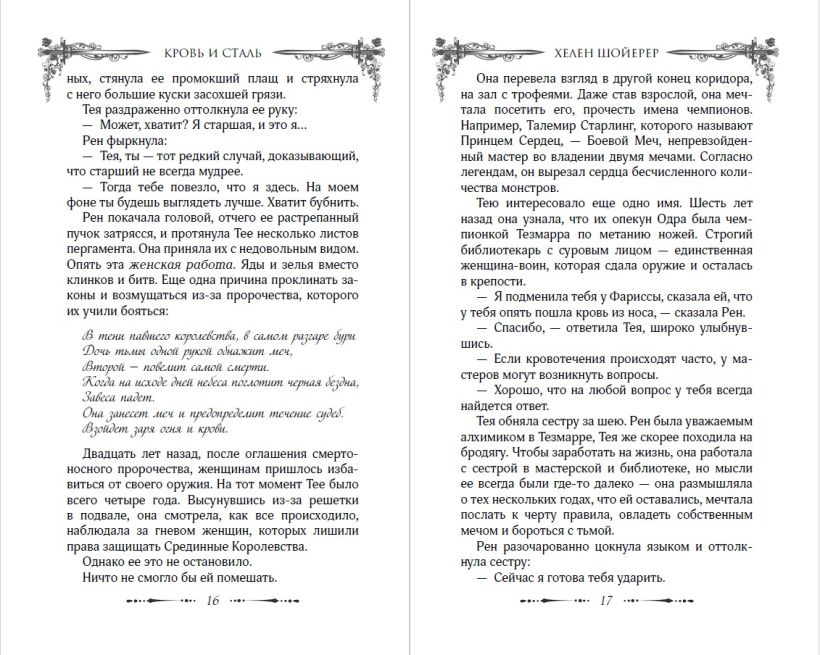 Двадцать лет назад, повинуясь пророчеству, все женщины были вынуждены сложить клинки, чтобы защитить королевство от будущих дочерей тьмы. Однако Тею это не остановило, и она всю жизнь тайно тренировалась, чтобы сегодня бороться за свое место в элитной гильдии, которая защищает пять королевств от монстров.