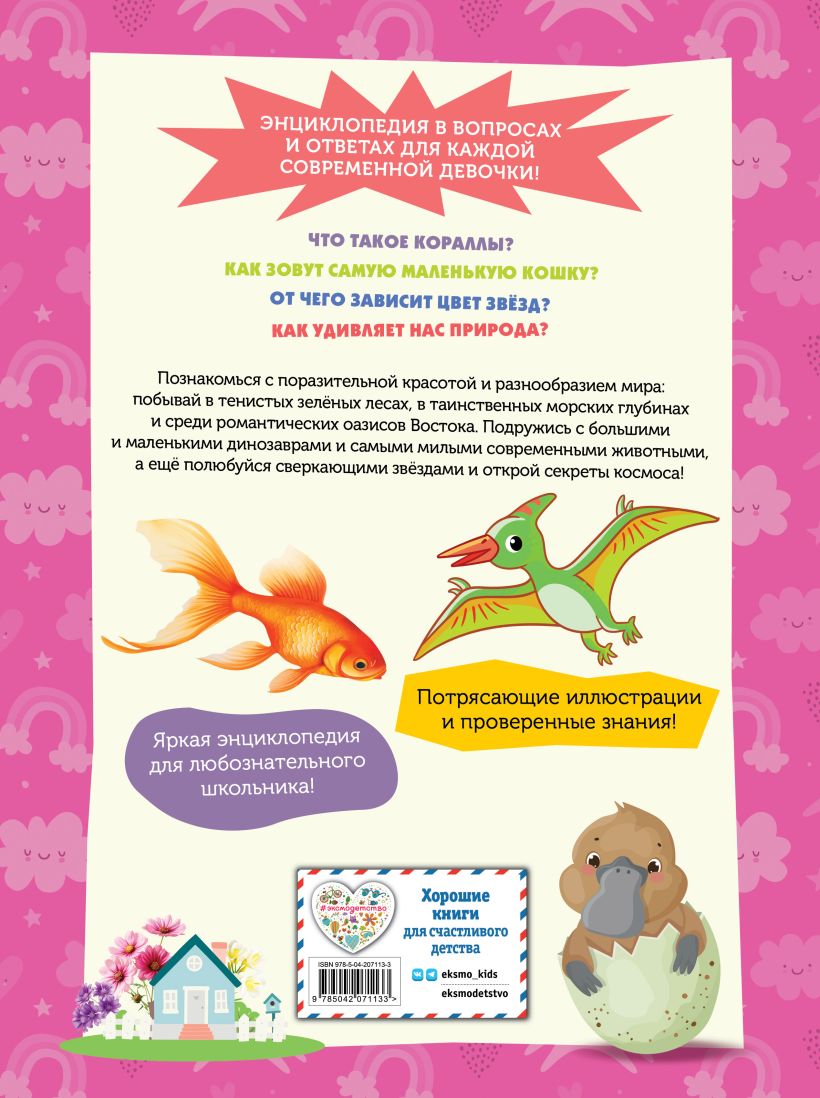 Настольная книга для девочек! Открой для себя разнообразие природы, удивительные секреты динозавров и современных животных, а также завораживающие просторы космоса.