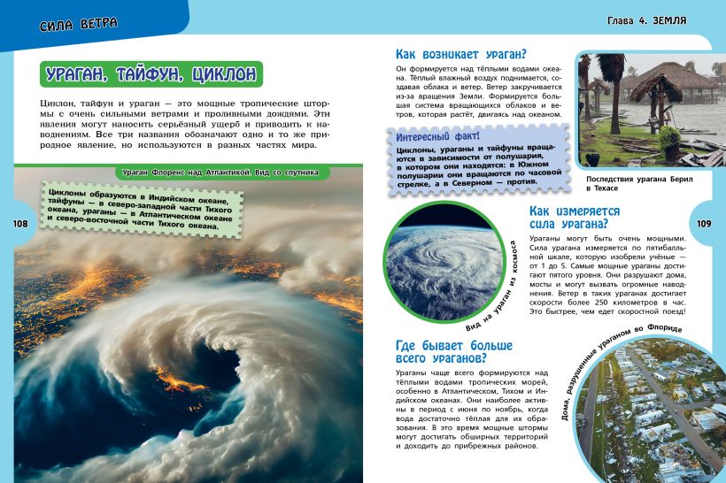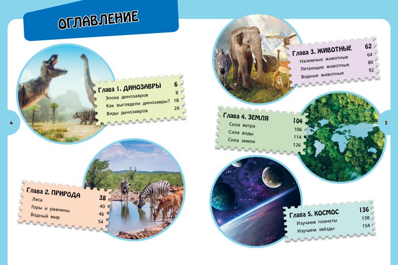 Знаешь ли ты, как образуются ураганы? Или почему укусы пчёл так опасны? А где на Земле находится самая высокая гора? С этой энциклопедией ты познакомишься с окружающим миром: побываешь в знойных пустынях и зелёных лесах, на вершинах гор и в глубинах океана, подружишься с различными животными и узнаешь о них множество интересных фактов. Также книга перенесёт тебя в доисторическую эпоху, в гости к первобытным обитателям нашей планеты — динозаврам! А затем ты совершишь прогулку по Вселенной среди звёзд и планет!