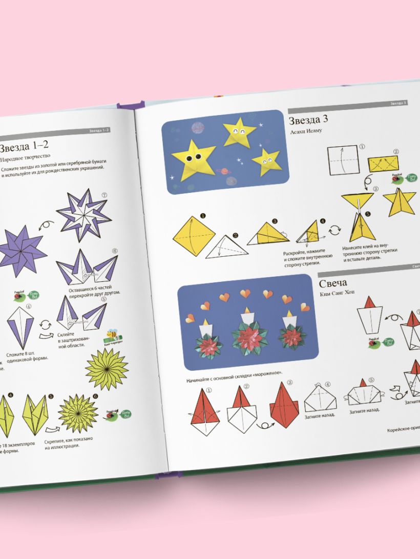 Подробные пошаговые описания и советы авторов помогут вам складывать даже самые сложные модели. Помимо привычных домов, цветов и животных, вы найдете увлекательные дизайны предметов быта, узоров, сезонных украшений и многое другое.