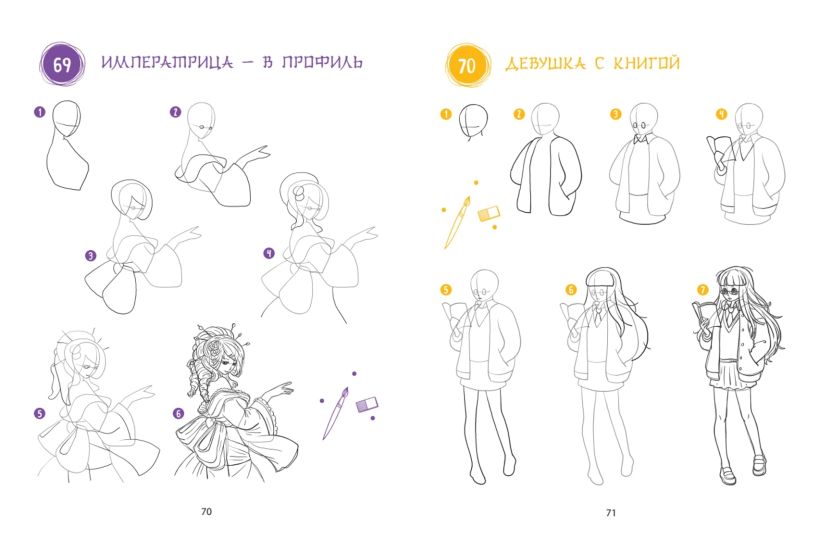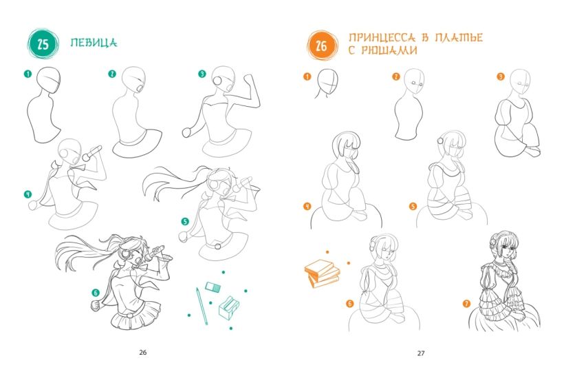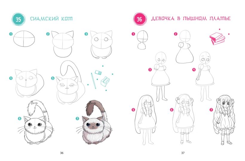 Рисование – это невероятное приключение, пусть и требующее труда и терпения: чем чаще ты практикуешься, тем быстрее добьешься успеха. Раскрой свой творческий потенциал с помощью этой книги, посвященной рисованию аниме! Люди и их эмоции, реальные и фантастические животные – всех их можно найти на этих страницах, и они только и ждут, когда ты их нарисуешь! Для начала удобнее всего будет использовать простой карандаш НВ. В нашем пошаговом руководстве используются простые формы и фигуры, доступные даже тому, кто никогда раньше не рисовал.