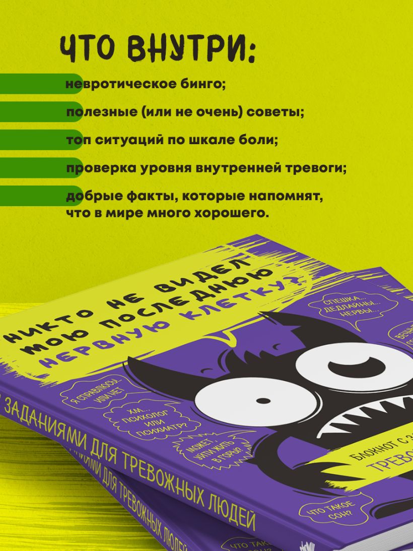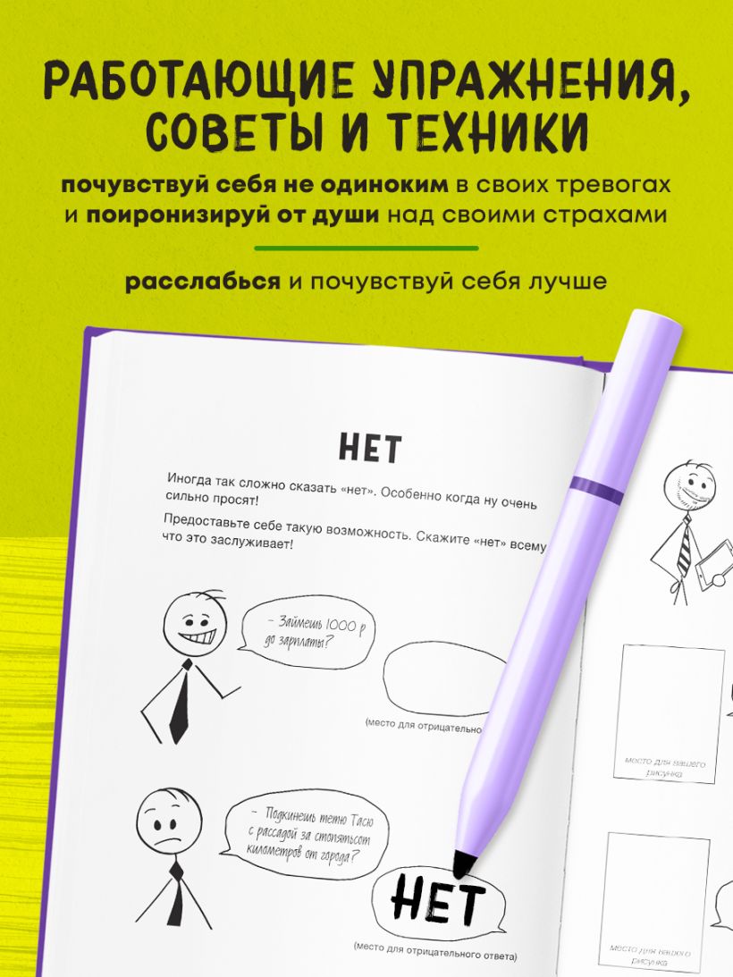 На самом деле, это не просто обычный блокнот. Это целая книга, которую вы можете посвятить только себе. Она создана для того, чтобы вы почувствовали себя менее одинокими в своих тревогах и могли поиронизировать и от души посмеяться над своими страхами.