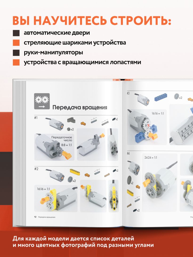 Вы научитесь строить автоматические двери, стреляющие шариками устройства, руки-манипуляторы, устройства с вращающимися лопастями и другие удивительные механизмы. Каждая модель иллюстрирует простые механические принципы, которые вы сможете использовать при сборке собственных моделей.