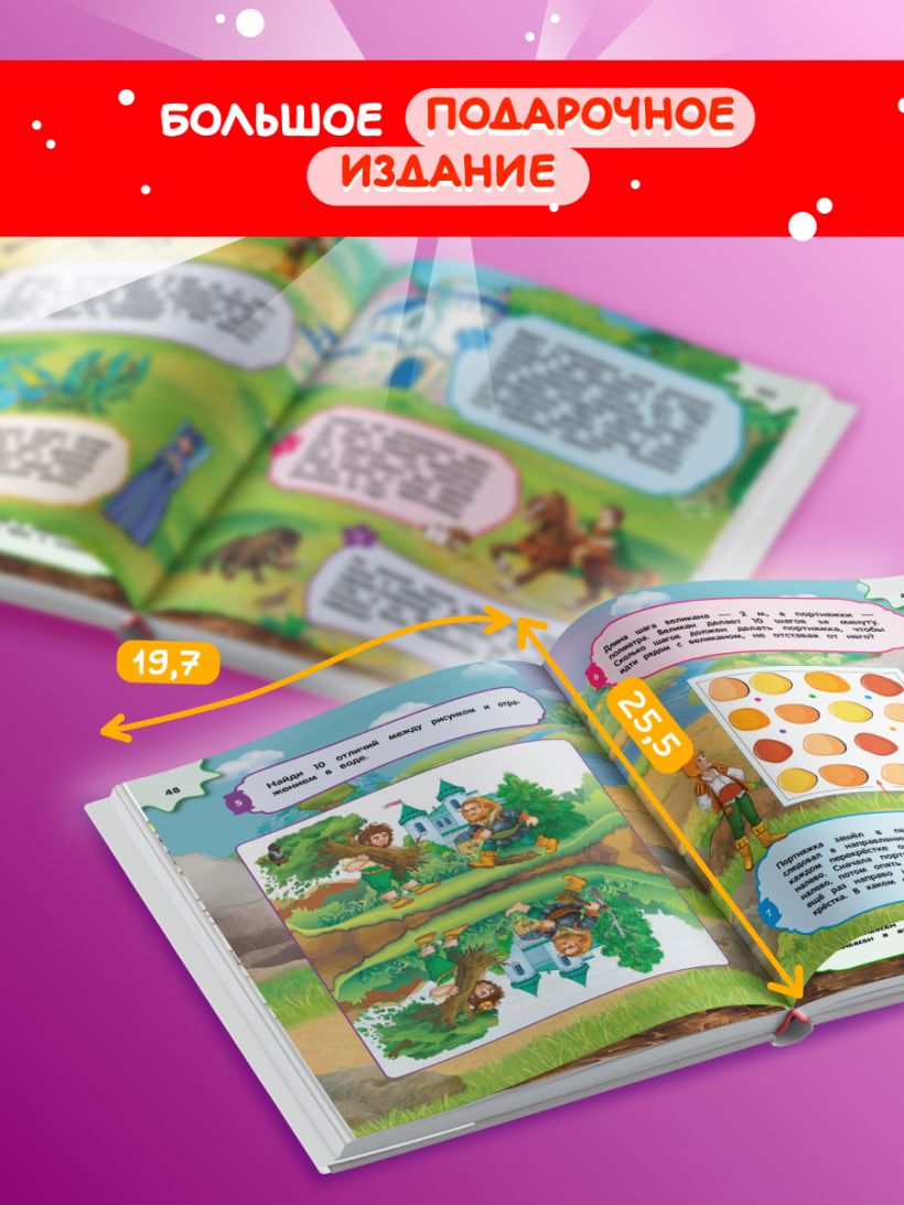 Большая книга логических игр и математических задач с яркими картинками по сюжетам популярных сказок подойдет мальчику или девочке 7, 8, 9, 10 лет. Роскошное подарочное издание станет идеальным подарком на день рождения, 1 сентября, 8 марта, 23 февраля, Новый год, да и просто без повода. Книга пригодится и для самостоятельных занятий, и для организации интеллектуальных конкурсов на детском празднике, и для коллективной или индивидуальной работы в школе. Это незаменимый помощник для родителей и учителей, стремящихся обеспечить качественную подготовку ребенка к урокам математики. Внутри — ребусы, кроссворды, лабиринты, головоломки и очень много задач на логику и внимание. Приведены алгоритмы решения нестандартных логических задач, что пробуждает в ребенке интерес и желание добиваться результата. Практика регулярного выполнения заданий способствует развитию уверенности при освоении любого упражнения из школьной программы.