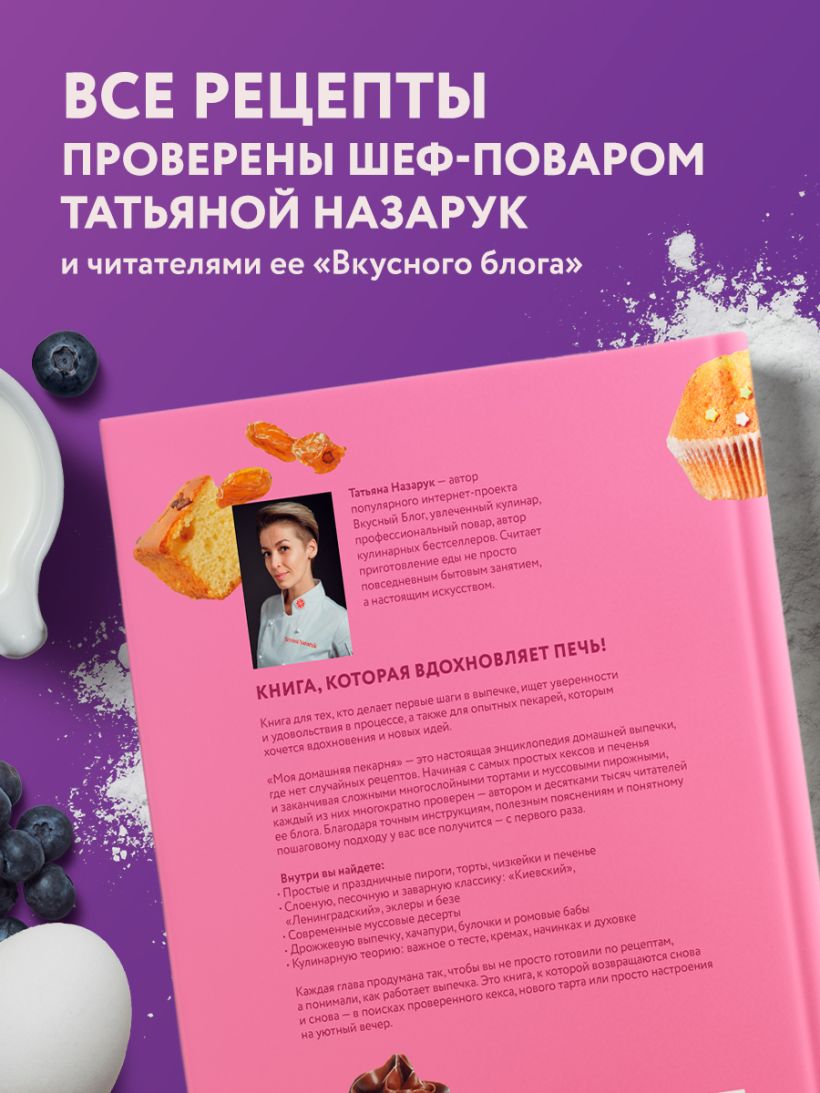 «Моя домашняя пекарня» — это настоящая энциклопедия домашней выпечки, где нет случайных рецептов. Начиная с самых простых кексов и печенья и заканчивая сложными многослойными тортами и муссовыми пирожными, каждый из них многократно проверен — автором и десятками тысяч читателей ее блога. Благодаря точным инструкциям, полезным пояснениям и понятному пошаговому подходу у вас всё получится — с первого раза.