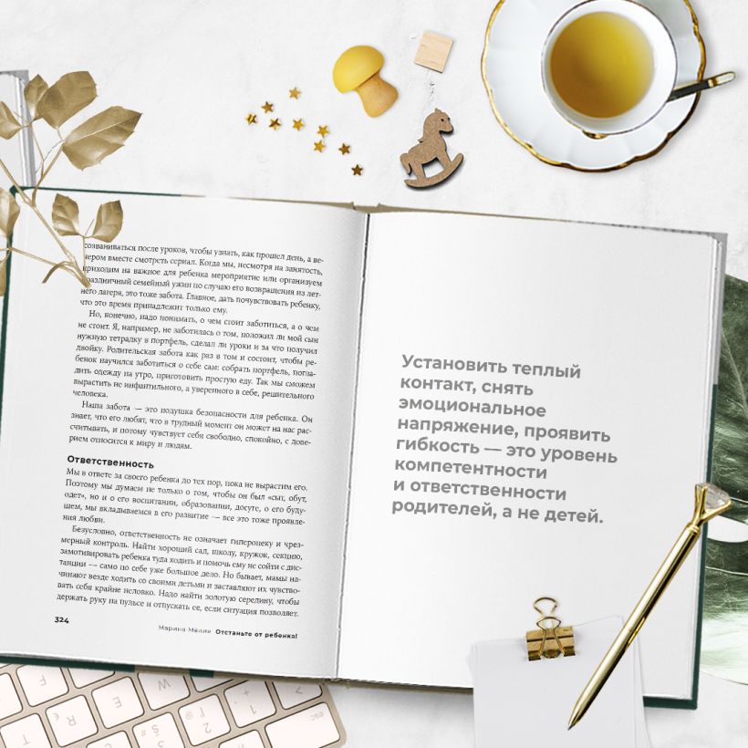 Вторая часть, «Отстаньте от ребенка!», посвящена разбору конкретных случаев и поиску решений «неразрешимых» проблем. Мы все хотим вырастить детей успешными, самостоятельными, счастливыми. И поэтому активно организуем их жизнь, контролируем поведение, постоянно одергиваем и корректируем. Марина Мелия предлагает более эффективный путь: оставить детей в покое и перевести фокус внимания на самих себя, на собственные слова и поступки.