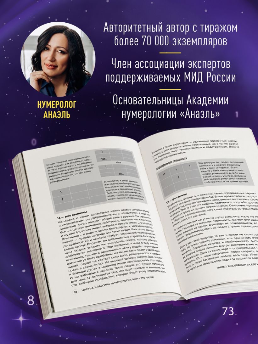 Нумеролог Анаэль — мастер космоэнергетики с десятилетним стажем, автор многочисленных курсов и марафонов, наставник миллионеров — ее подопечные зарабатывают от 200 тысяч до 15 миллионов рублей, автор 6 книг-бестселлеров, обладательница премий: Нумеролог года 2021, Нумеролог года 2022, Лучший нумеролог страны, член ассоциации экспертов, поддерживаемых МИД России, приглашенный эксперт на федеральных каналах. Более 10 тыс. личных консультаций, более 5 тыс. учеников, бесчисленные благодарности от тех, кому Анаэль помогла разобраться в тайнах нумерологии и в собственной жизни, — вот далеко не полный перечень ее заслуг.