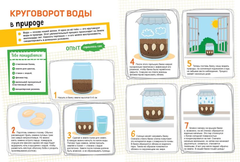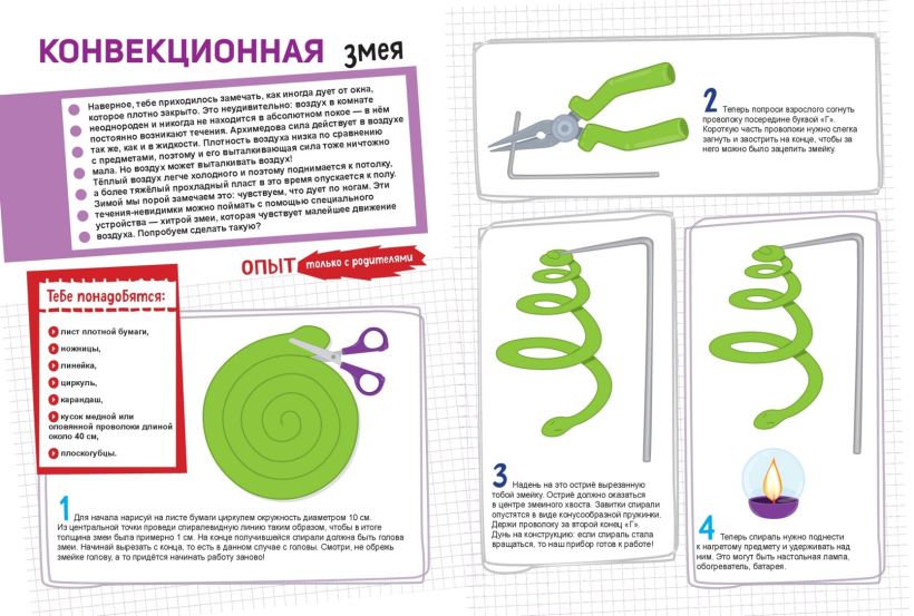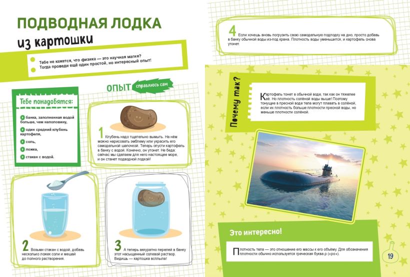 Ты узнаешь, как спроектировать солнечные часы, изготовить клей из воды, сделать флюгер и даже сможешь сконструировать собственную подводную лодку из картошки!