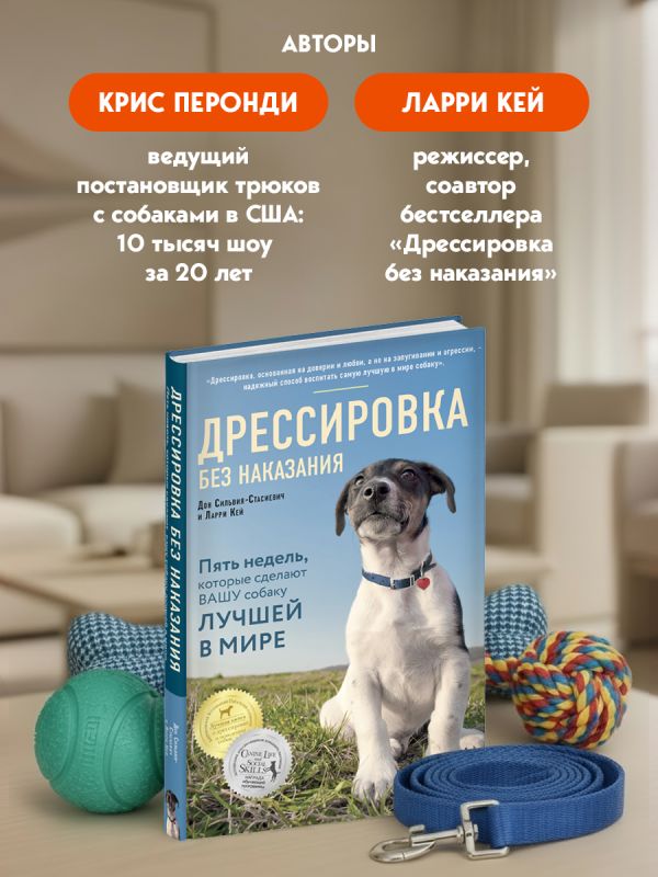 Ваша собака может стать лучшей в мире всего за 5 недель! И для этого не нужны жесткие методы воспитания, строгий ошейник или клетка для наказаний. Авторы этой книги знают по своему многолетнему опыту, что отношения с питомцем, основанные на доверии и любви, а не на запугивании и агрессии — надежный способ воспитать самую лучшую в мире собаку. Дон Сильвия-Стасиевич — профессиональный кинолог с 20-летним стажем. До дрессировки собак семьи Барака Обамы воспитывала всех щенков сенатора Теда Кеннеди. Ее курс «Поощрительная система дрессировки щенков» очень популярен в разных странах. Ларри Кей — журналист и писатель из Лос-Анджелеса, редактор журнала «Dog Fancy», автор серии телепрограмм для детей по уходу за собаками. Всего 10—20 минут практики в день помогут отучить от вредных привычек как щенка, так и взрослую собаку. В этой книге вы найдете: – Как отучить собаку прыгать на гостей, тянуть за поводок на прогулке и беспричинно лаять на дверь. – Как без нервов и стресса обучить питомца основным командам: «сидеть», «стоять», «лежать», «ко мне» и другим. – Как воспитать собаку так, чтобы она стала комфортной для этого мира, и сделать мир комфортным для нее. – Пошаговые инструкции и закрепляющие домашние задания для достижения эффекта.